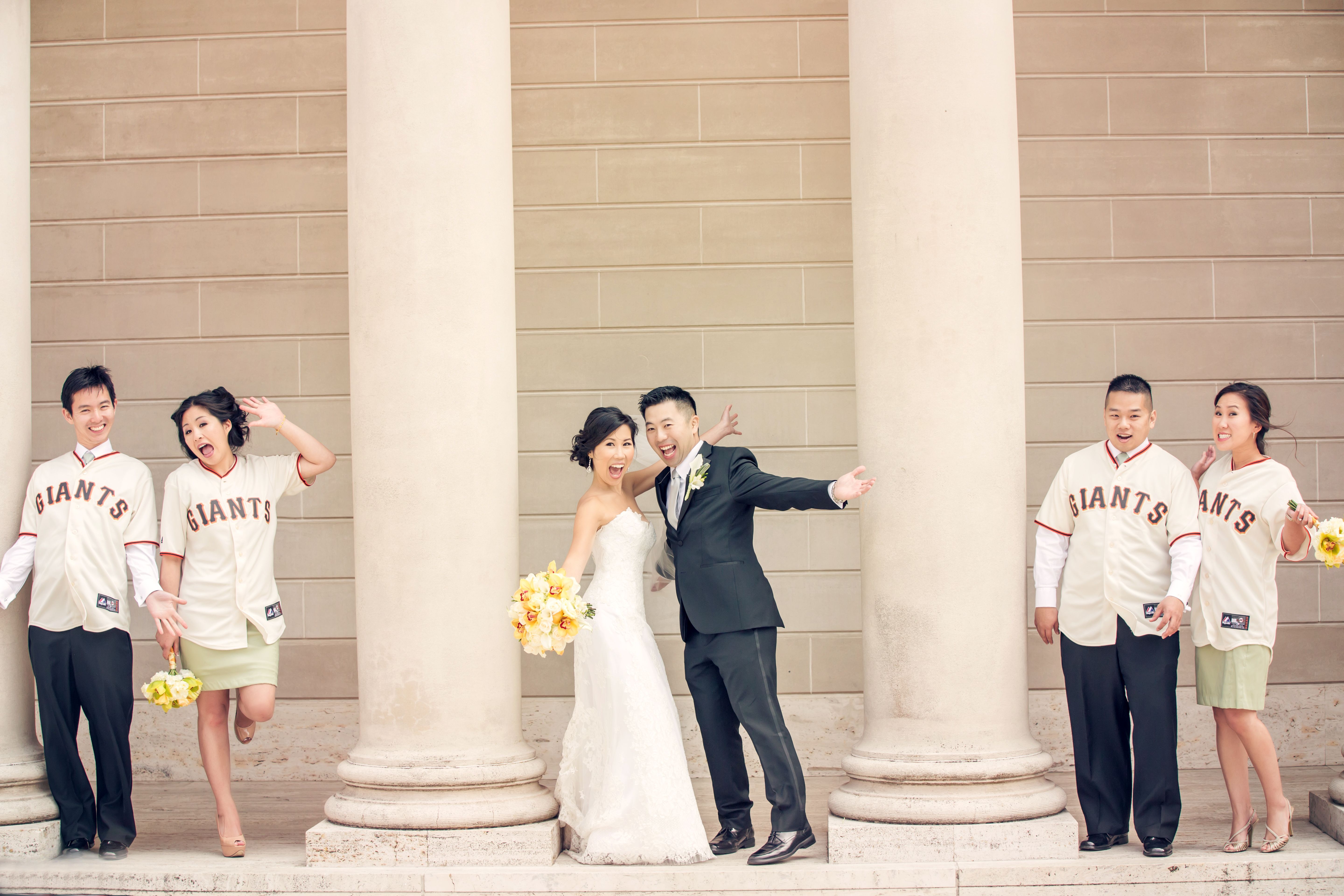 David and Lisa recently married at the Four Seasons hotel in San Francisco. As graduates of both Lowell High School and UC Berkeley, the couple couldn't imagine tying the knot anywhere other than the Bay Area. They used a local baker, floral designer, and even had custom Giants jerseys made for the wedding party, with the date of the wedding inscribed onto each one.