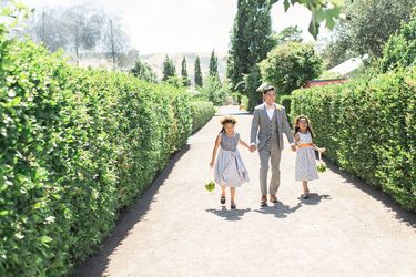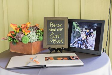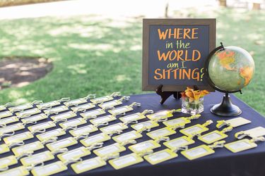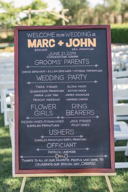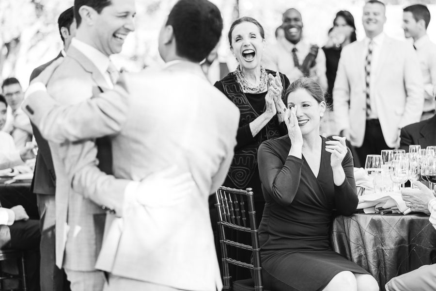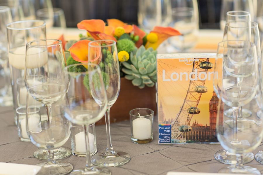 They incorporated their love of travel into many of these details. The luggage tag escort cards doubled as wedding favors. John and Marc cut the covers off of many guide books they had used in past adventures to use as table names. Even after all the details were successfully accomplished, John said the best part of their wedding was walking into the reception and, after all these years, being announced as husbands.