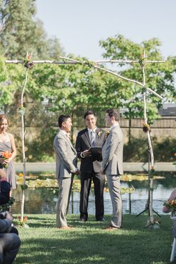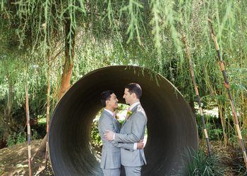 When planning their big day, the goal was to create a classy yet fun wedding experience for themselves and their guests. They fell in love with the uniqueness of Cornerstone Gardens, with its modern art installations and beautiful landscape. John and Marc spent a total of nine months planning, intent on making every detail of the wedding memorable from the custom cake topper to the archway.