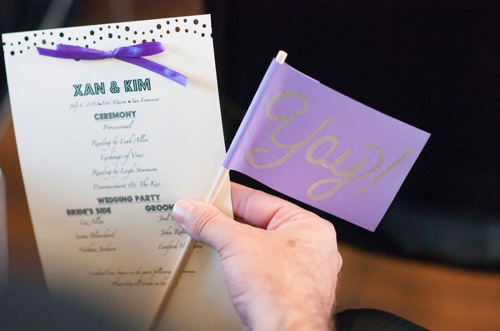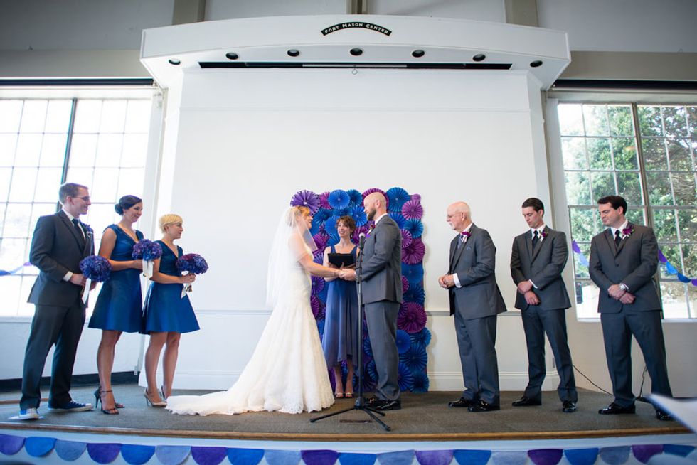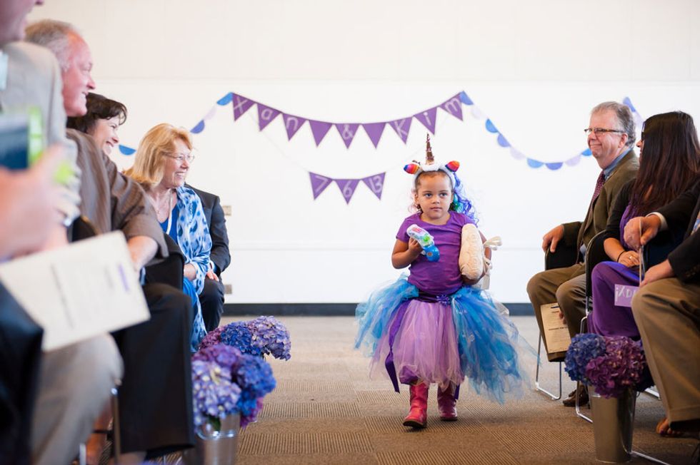 From the flower girl dressed as a unicorn, to the gorgeous display of bright purple and blue paper flowers, Kim and Xan's San Francisco wedding was one for the books.