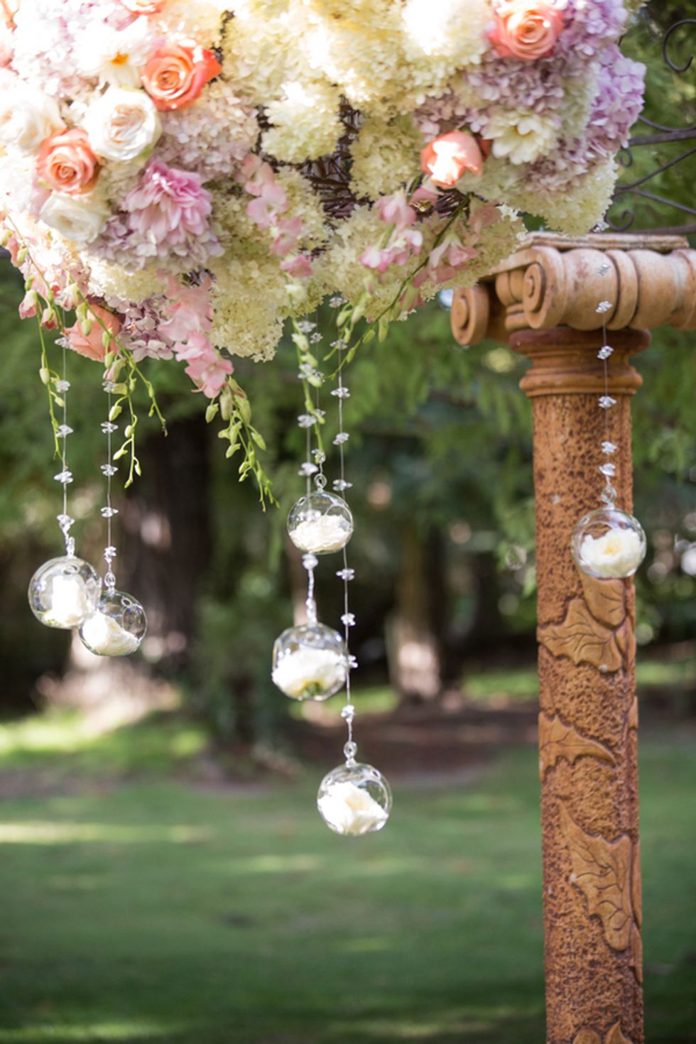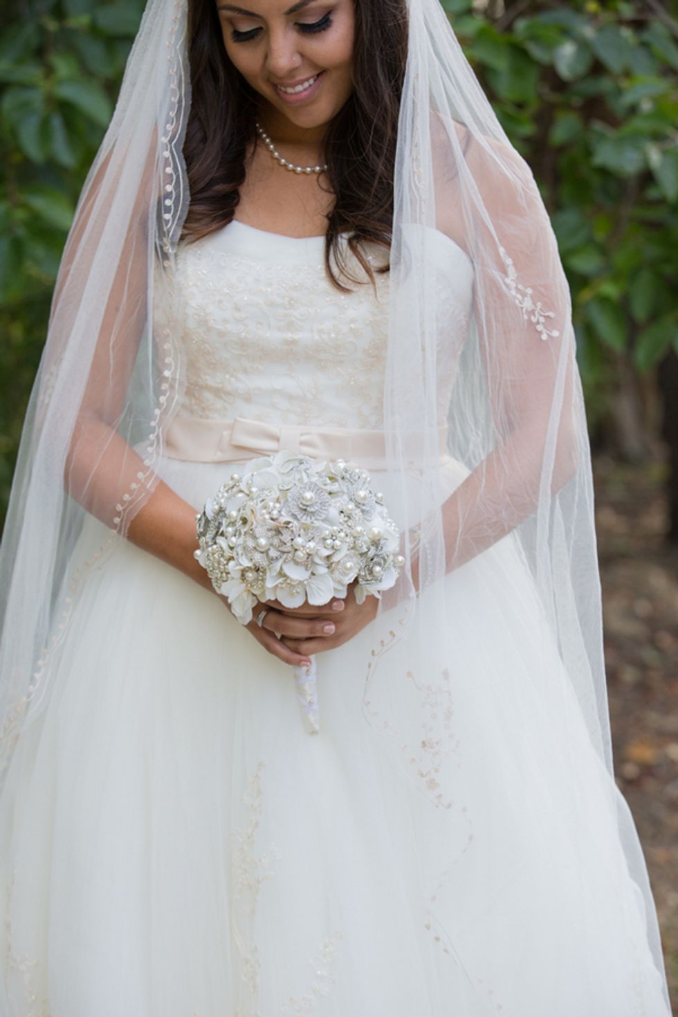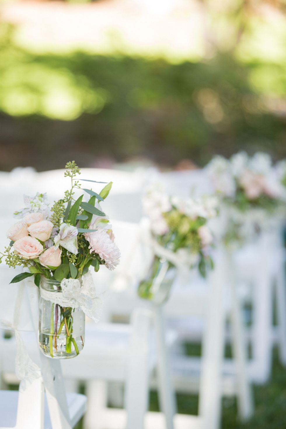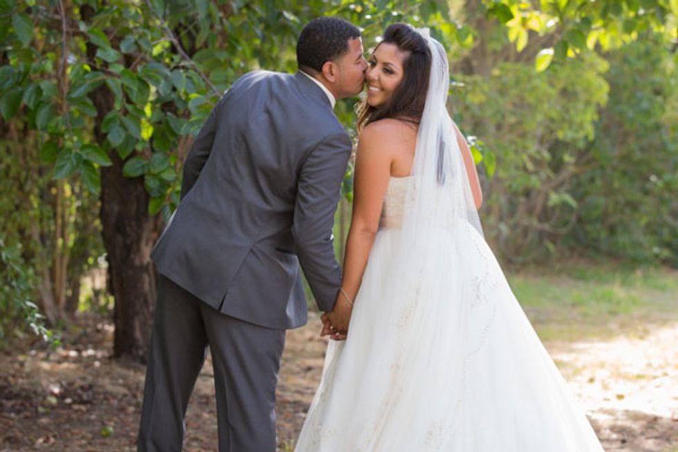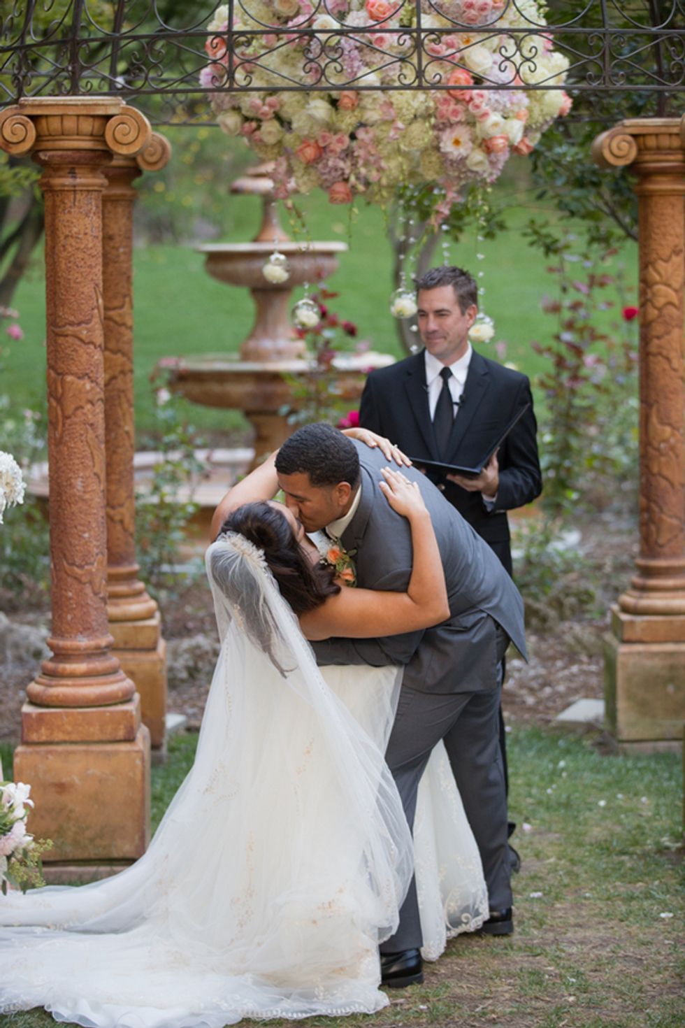 From the cottage where the reception was held to the giant bouquet of roses, lace-trimmed centerpieces, and pink lemonade stand, everything about this Fremont wedding appeared to have popped out of a princess film. The bride looked beautiful in a traditional gown with a long, beaded veil, but kept it modern with a pair of baby pink Toms in lieu of heels.