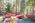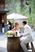 The couple let their outdoor wedding's scenic backdrop speak for itself, with a little help from hanging tea lights adorned with paper flower lanterns, a vintage van with a trunk that doubled as a drink table, and subtle floral arrangements in shades of green and white that evoked the hues of the forest.