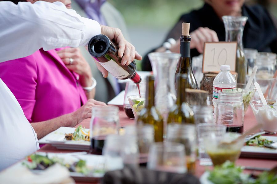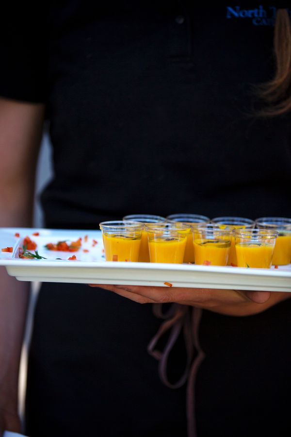 Party favors included red cups filled with cans of beer and mini tequila bottles, as well as hot sauce bottled in homemade fashion. In addition to a dinner under the stars, food truck Burger Me was also on site during the day.