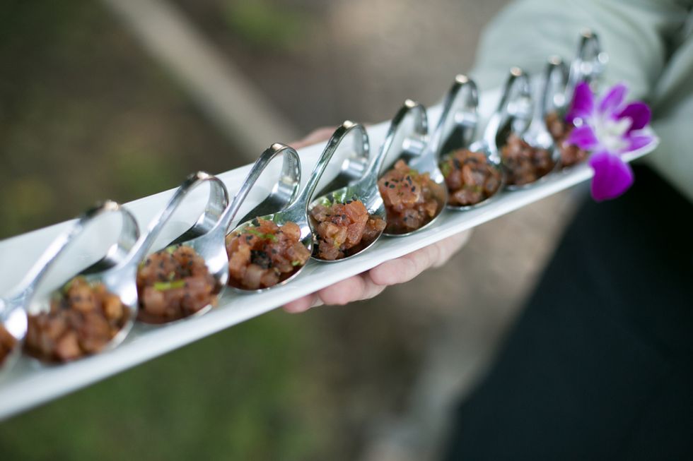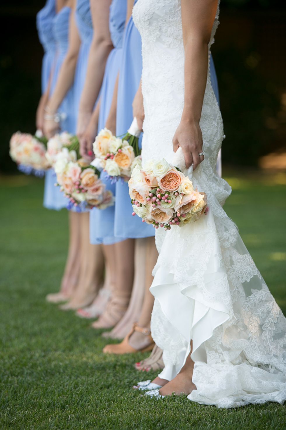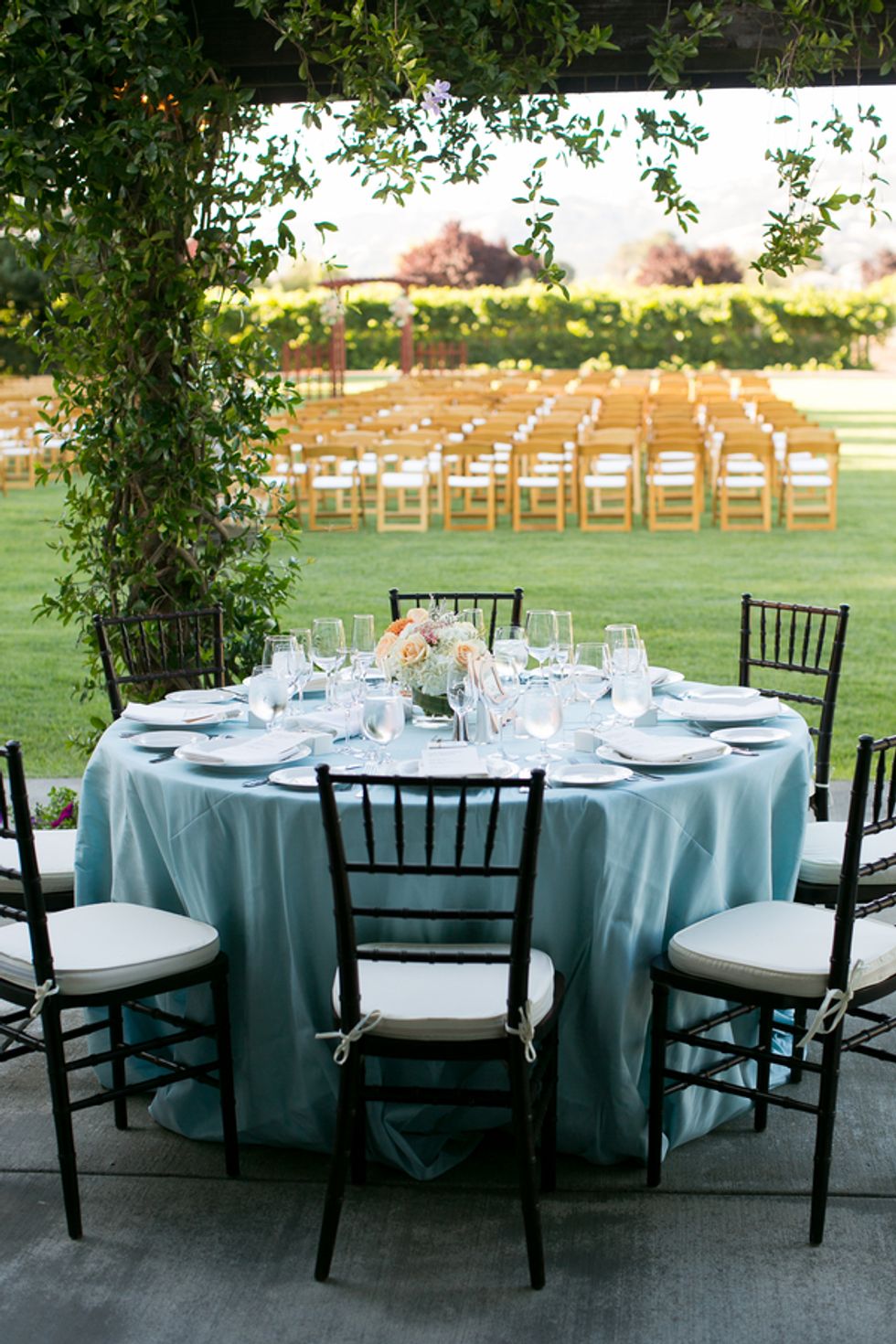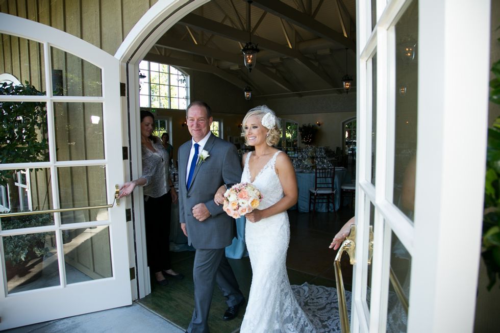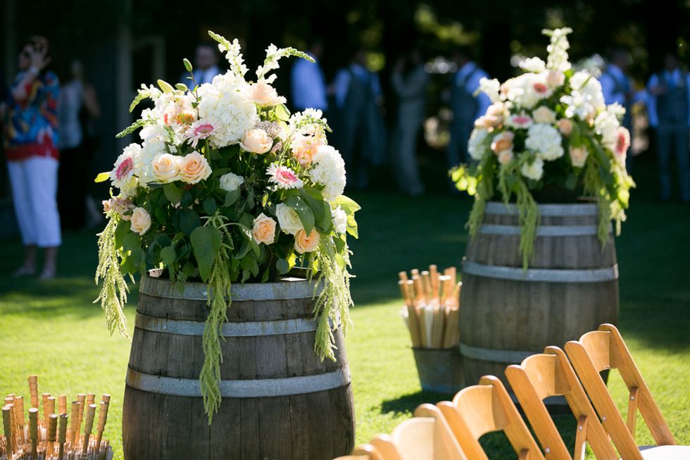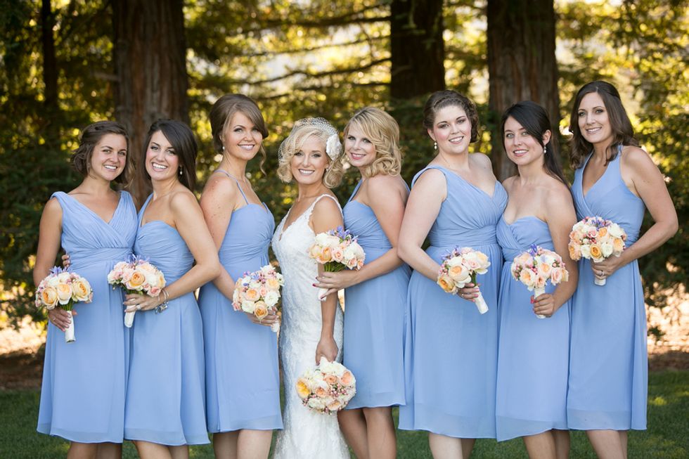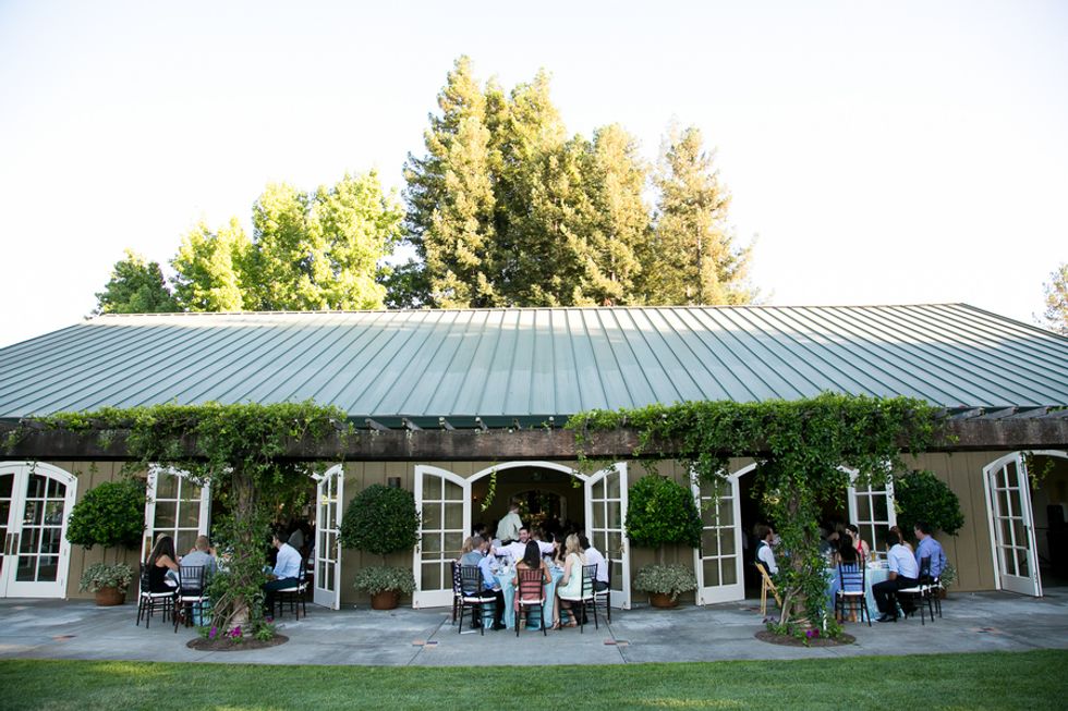 The couple's wedding style reflected a taste for the whimsical in a rustic outdoor setting. The pair said "I do" amidst rolling vineyards and sprawling hills at the beautiful Trentadue Winery in Geyserville. Emily's lacy, backless dress was offset by a groom's party adorned in plaid. Following the ceremony in the foothills of Napa Valley, the reception took place in a casual, indoor/outdoor space highlighted by wood finishes and sparkling string lights. The couple capped their big night by cutting a Rice Krispie cake before sharing their first dance as husband and wife.
