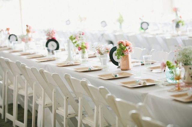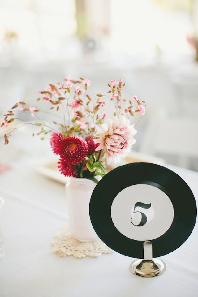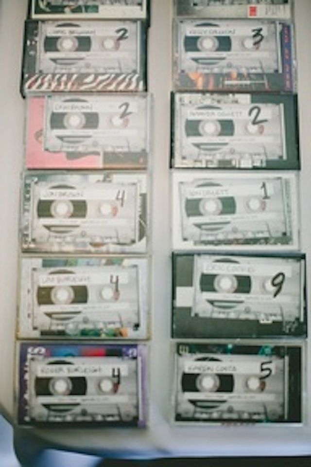 Matt is a musician, and created the ideas for escort cards (vintage cassette tapes from eBay) and the table numbers (7" records held up by a little stand). Laurel from Esla Events ensured that the newlyweds had some special time together throughout the wedding which helped them stay focused on each other on the big day. The last song of the night was "Livin' on a Prayer" by Bon Jovi, a friend and family tradition for all special occasions.