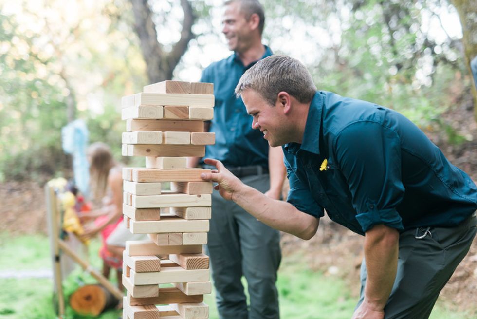 Lovers of nature, Amanda and Ryan later said I Do in an intimate ceremony at a wooded venue in Sonoma County, surrounded by family and close friends. Rustic wood design elements and bits of DIY craft provided the decor for the celebration that included such old fashioned fun activities as cornhole and jenga. All vendors were friends of the family. The lovely make up and hair was done by a sister and delicious food prepared by cousin members.