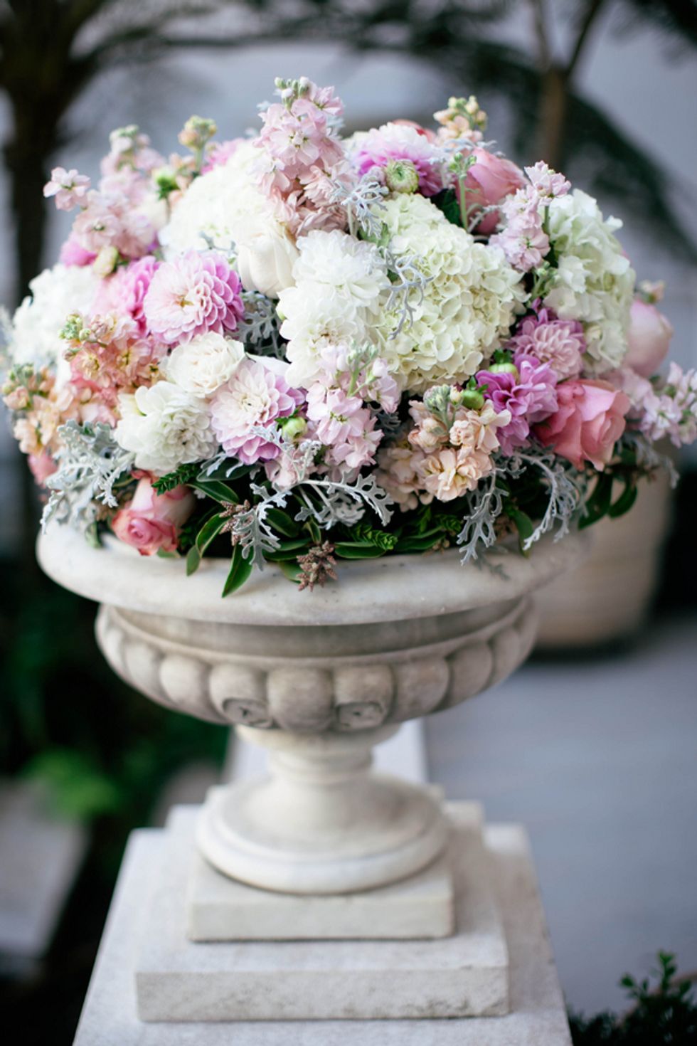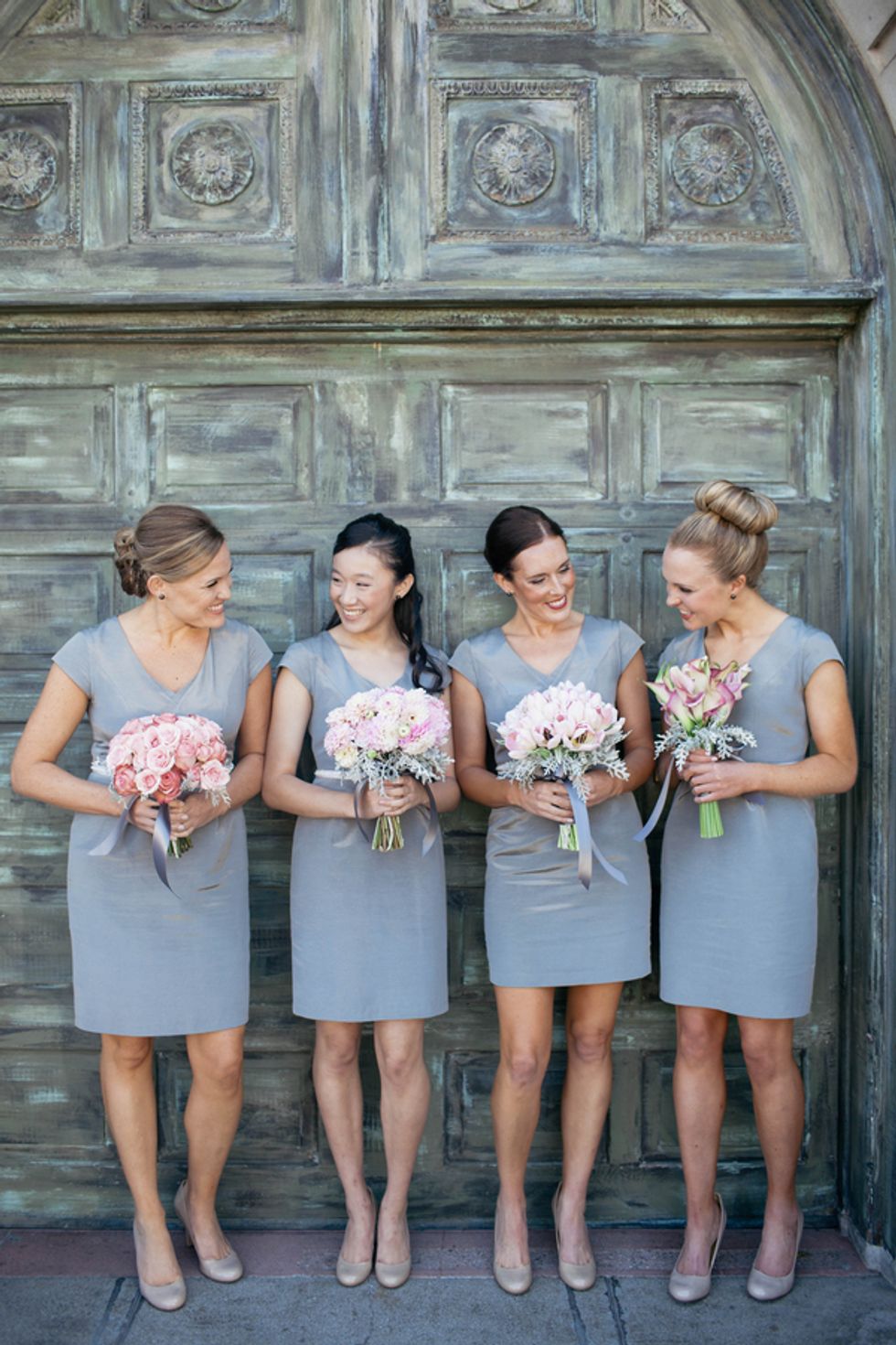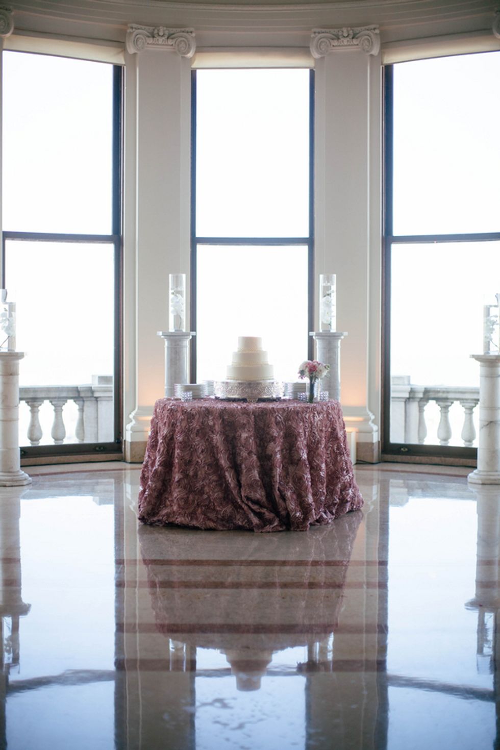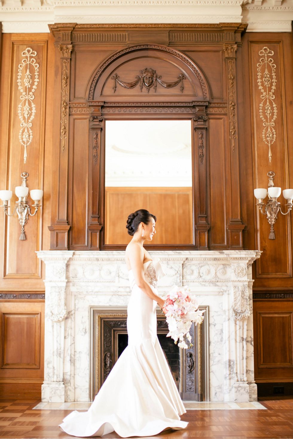 The couple, their party, and the house were all decked out in classy yet subtle style for the affair. Jenny wore an exquisite, mermaid-style strapless gown, her groom and his groomsmen embraced sharp bowties and velvet accents, and pastel flower arrangements graced the granite jardinières.