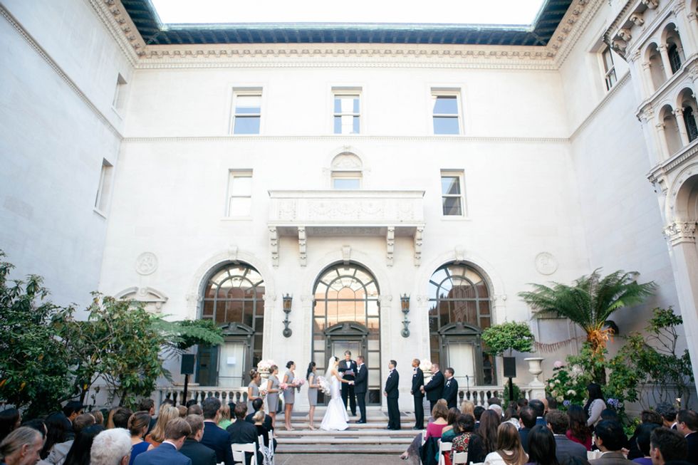 Software engineers Jenny and Drew chose the stately James Leary Flood mansion for their intimate nuptials. The home has a romantic history––Flood, a mining heir, built the sturdy and palatial estate to quell his wife's fears after their former dwelling was destroyed in the 1906 Earthquake.