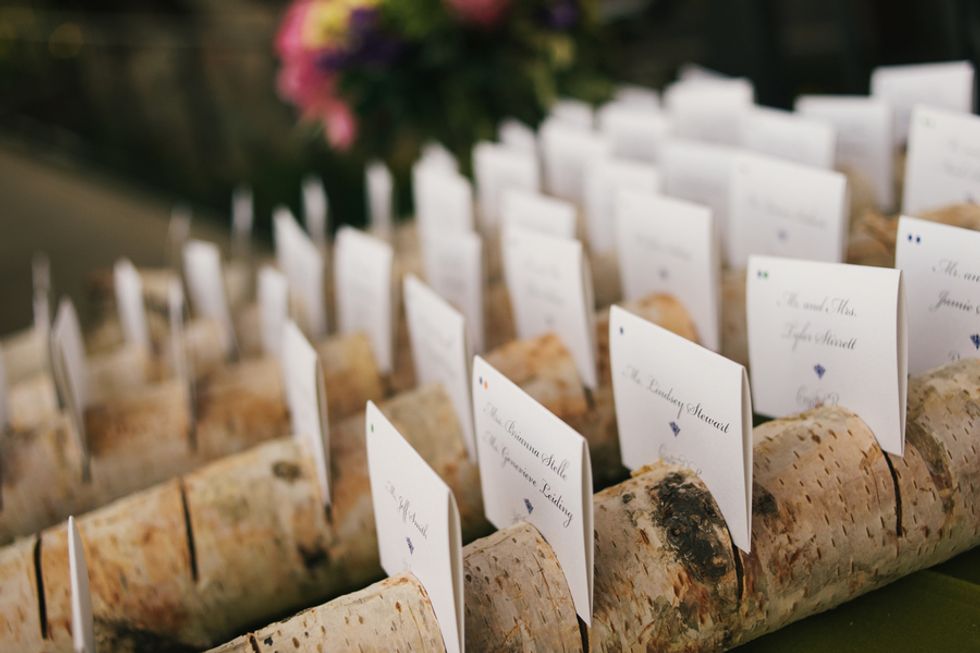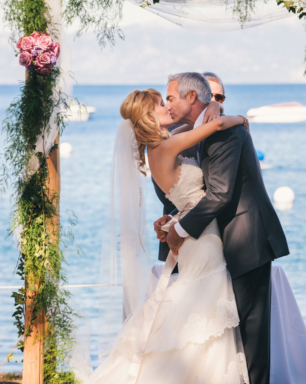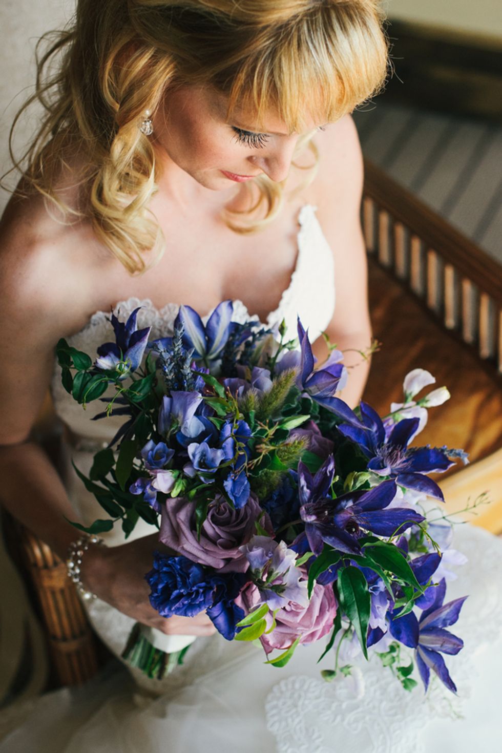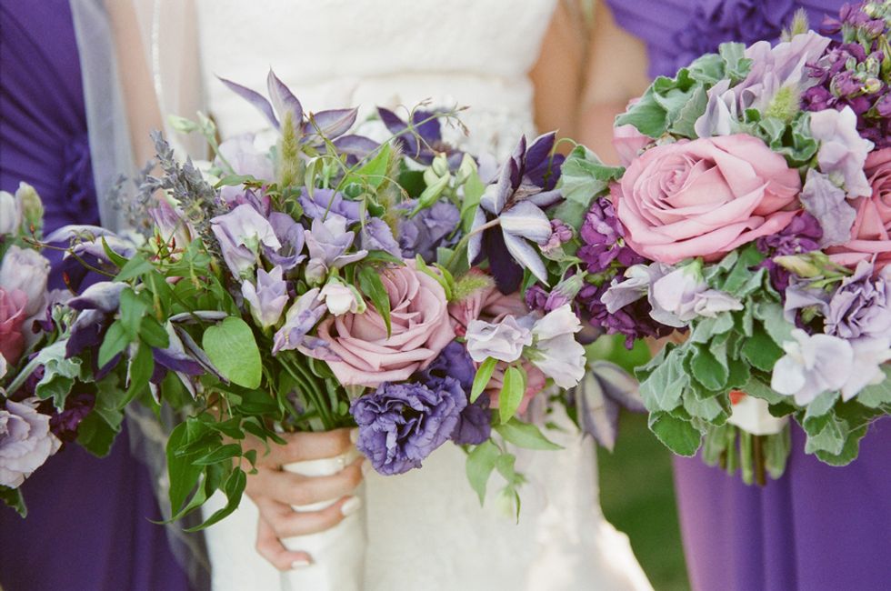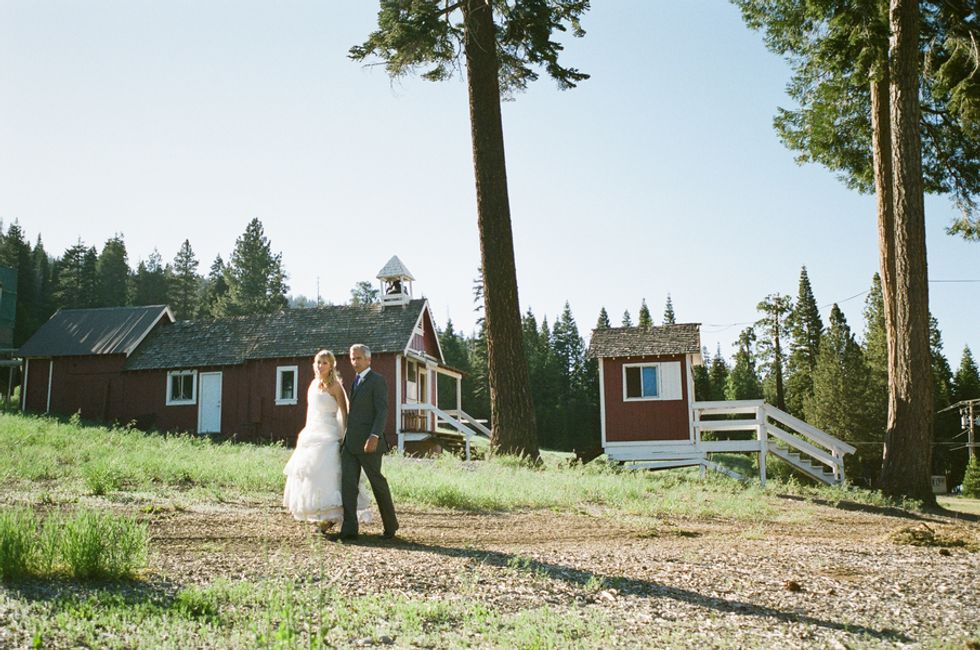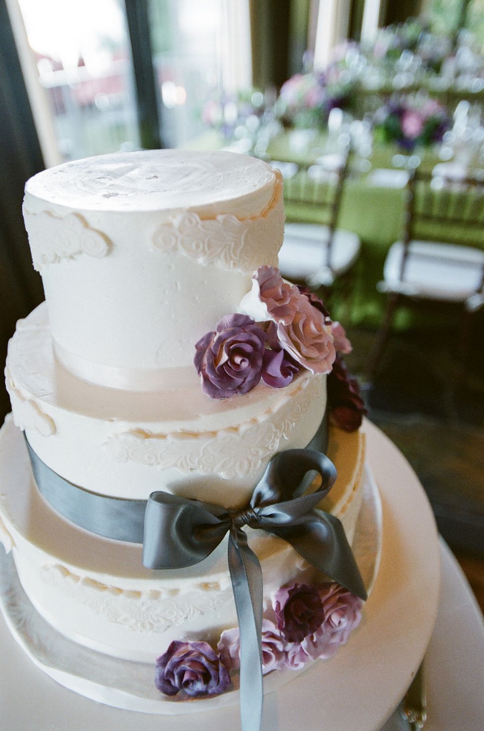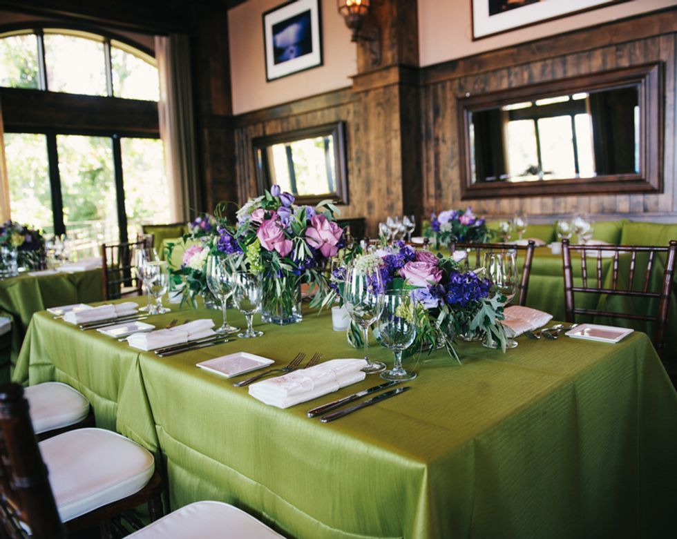 The purple and green themed nuptials provided a bright accent to the gorgeous lanscape where the ceremony took place, and guests enjoyed a spectacular view of Lake Tahoe while the couple said, "I do."