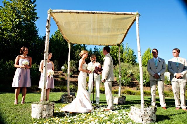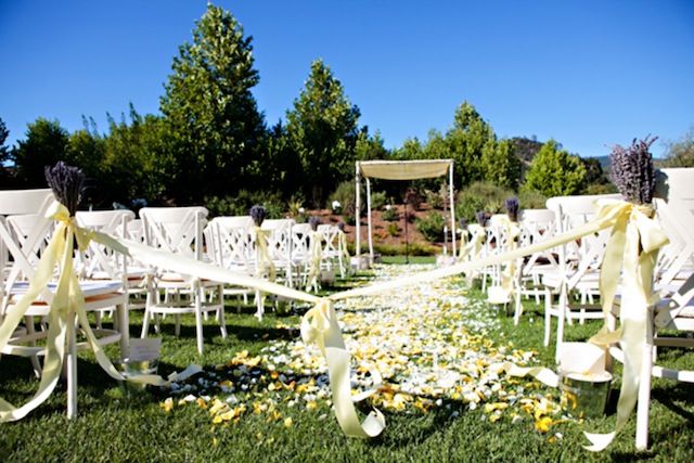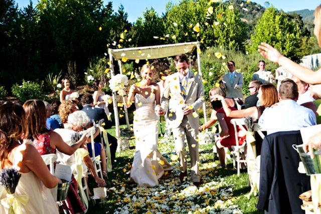 Miriam Ziskin & Mike Swofford said their vows in Calistoga, California under a beautiful arbor surrounded by family and friends. Pops of purple, blue and yellow added color to an already picturesque outdoor setting. Rose petals flew as the newlywed pair was announced for the first time. The couple celebrated with their guests later that evening at the Solbar at Solage Calistoga where they enjoyed a beautiful dinner and danced the night away.