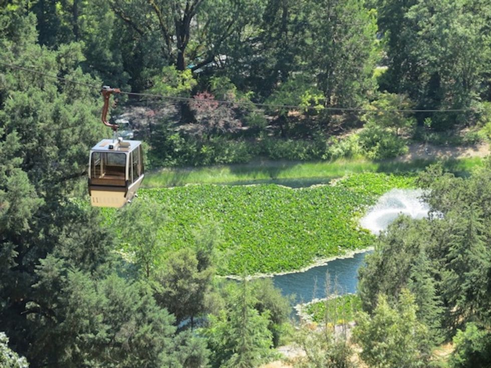 The Sterling Vineyards aerial tramway, as they call it, is actually a triangular mono cable gondola. It opened in 1973 and there are no loops or turns for the faint of heart to worry about. The lift up to the winery and tasting rooms takes a little more than three minutes. Every year, more than 200,000 folks ride it for a top notch view of Napa Valley.