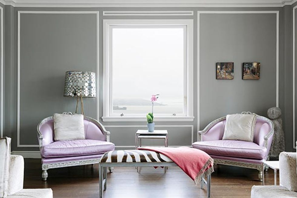No one has ever accused Gray of being afraid of bright colors. These reupholstered Nancy Corzine chairs came out a shade brighter than anticipated, but “add a few pillows, set them next to a zebra print table, and dress up the space with even brighter purple, and they’ll blend right in,” says Gray.