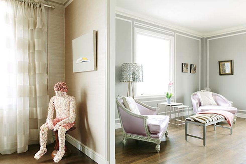 The ceramic sculpture sitting in the corner of Gray’s dining room—an interpretation of the boy featured in Georges Seurat’s Bathers at Asnières—has been known to scare unsuspecting guests who wander the halls. A closer look reveals where her pugs have taken to chewing on his toes.