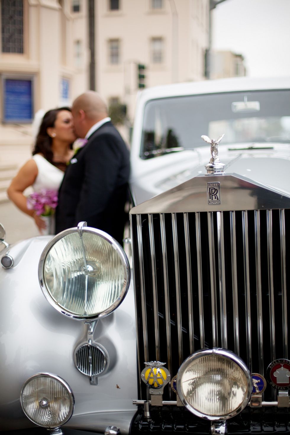 It was a beautifully warm day on 9.10.11, perhaps the most popular wedding date of the year. Kathleen got ready in her hotel room in South San Francisco, and then she hopped into the gorgeous 1946 Rolls Royce Bentley to join her husband-to-be at the church in San Francisco. A perfect way to start the day. Meanwhile, Wesley was walking up and down the aisles of the church as the guests arrived, warmly greeting friends and family and making last minute arrangements. Finally, he stood at the front of the alter, his smile broadening as she walked down the aisle to join him. It was a lovely ceremony and a celebration of love and family.