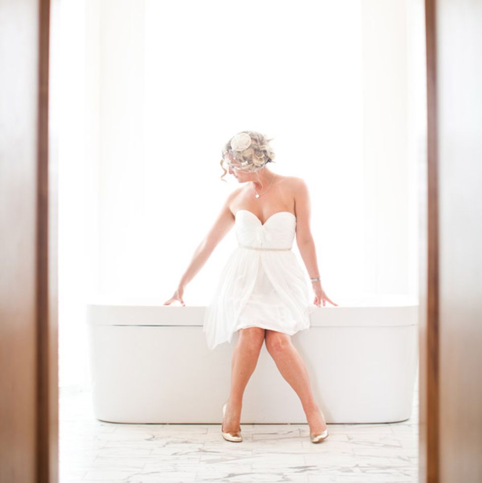 The day of the wedding—Friday, August 12—the bride donned one of the 20 potential dresses she had purchased for the event and headed to San Francisco City Hall. “I didn't want something from David's Bridal," she says. “I wanted something red carpet worthy, a dress whose price I'd never be able to justify. I just couldn't settle on the one, and then I drove past a store in Portland four days before the wedding and saw this dress by Sarah Seven. It was exactly what I'd been looking for."