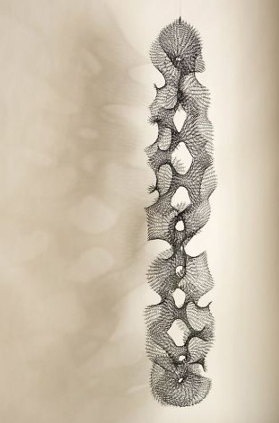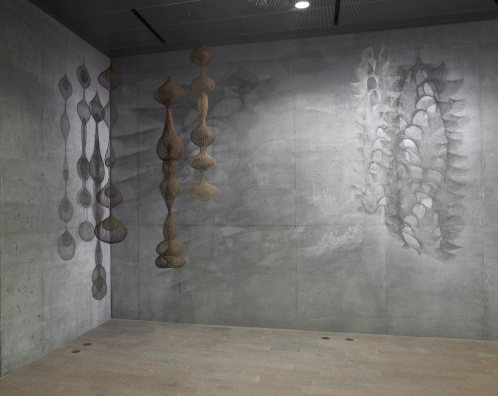 Asawa found inspiration in everything from Mexican basket weaving to the ideas of futurist Buckminster Fuller, and her work brought out the natural qualities in inorganic materials. Despite the intricacy and abstract beauty of her work, Asawa's use of unconventional materials and old-world techniques unfortunately relegated the artist to craft status in the eyes of the fine arts world until the de Young ran a long-overdue retrospective of her work in 2006. The museum was gifted 15 wire sculptures for installation in the lobby of the Nancy B. and Jake L. Hamon Tower, forever carrying on the artist's legacy.