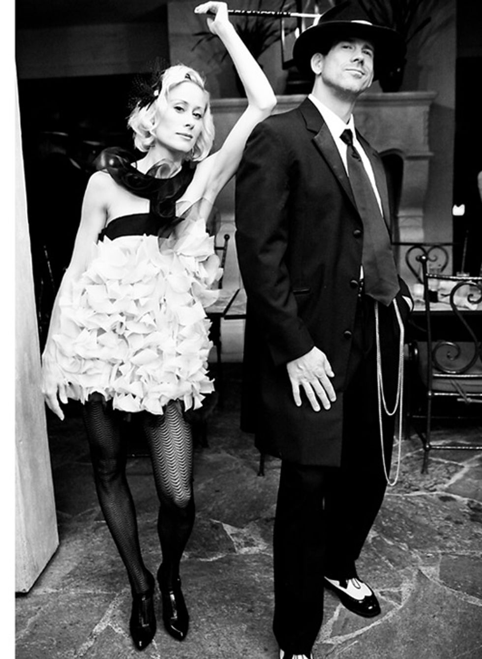 Given Brian’s penchant for playful clothes and costumes, the wedding was destined to be remarkable. It started with a 1920s flapper-meets-gangster, black-and-white themed rehearsal dinner. “Brian’s family has always loved dressing up for any occasion,” says Malissa. The couple carries on the tradition, sometimes wearing wigs to brunch “just because.”