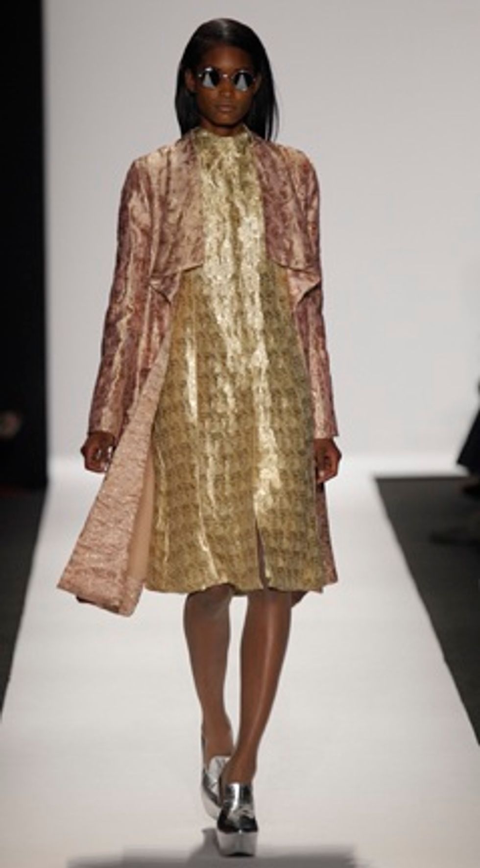 When Irla’s collection stepped onto the runway at Lincoln Center, I was whisked away to a lavish world filled with confident feminine women. All her models had on mirrored sunglasses and mirrored platforms that framed her looks perfectly. Beautiful shiny brocade fabrics from vintage Indian Sarees coupled with clean bold designs, resulted in a dazzling display of beauty and mystery.