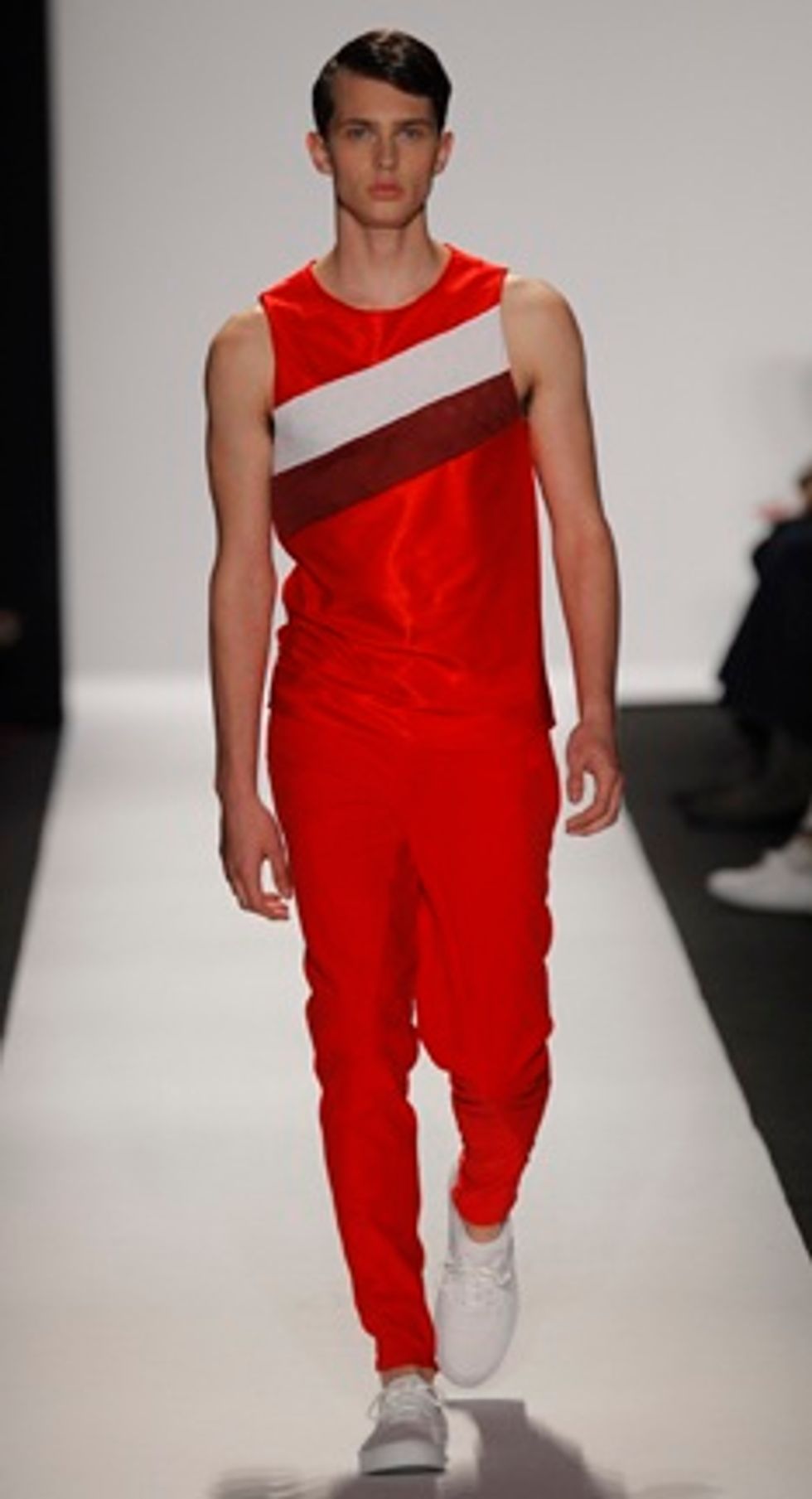 Doerr’s collection was based on the adventures of Soviet Cosmonauts. David designed an oxblood bonded cotton plaid suit, a sleeveless cotton mesh tank and red pant combo, and everything in between. Now that’s a cool Cosmonaut - take me to the moon.