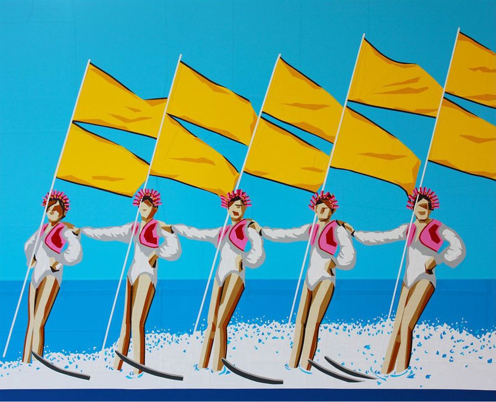 The work they actually created while at Headlands, however, takes an altogether different tack, with topical pop culture as a jumping-off point. The "Polaroid" series, which will also be on view at State Gallery, "explore[s] societal diversity by digging into the concept of togetherness," Andersson says, pointing to contrasting depictions of female prison inmates and retro-glamorous water-skiers. "The way in which those two groups of women touch each other is very similar, but the feeling is completely different," she says.