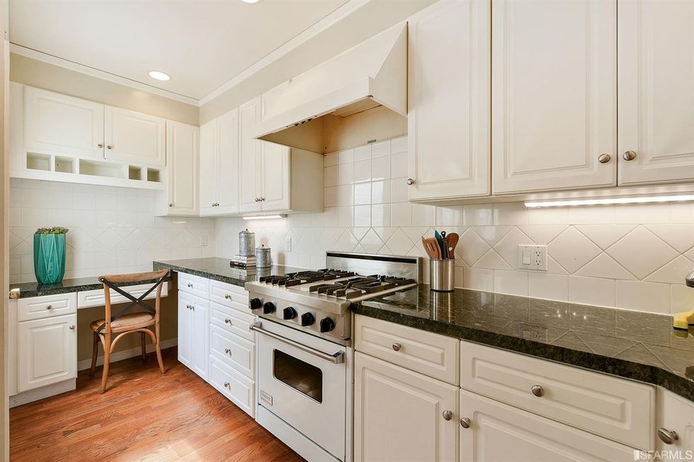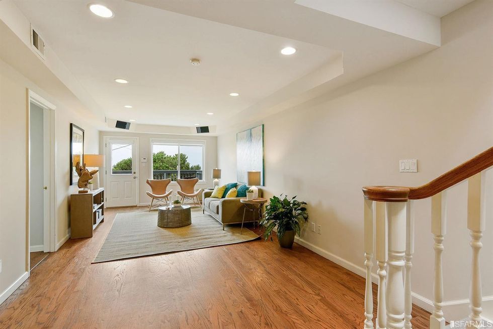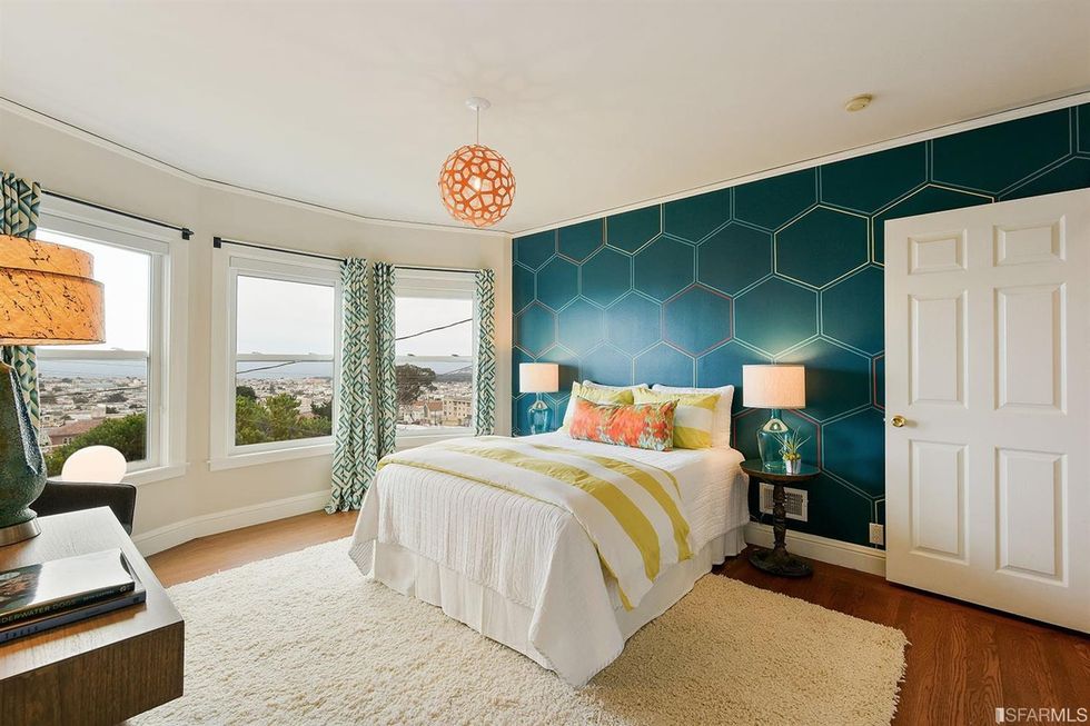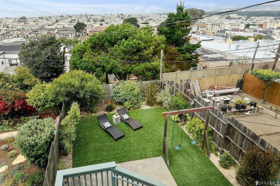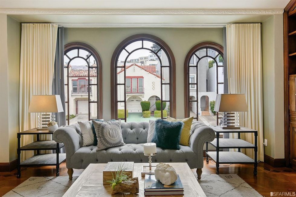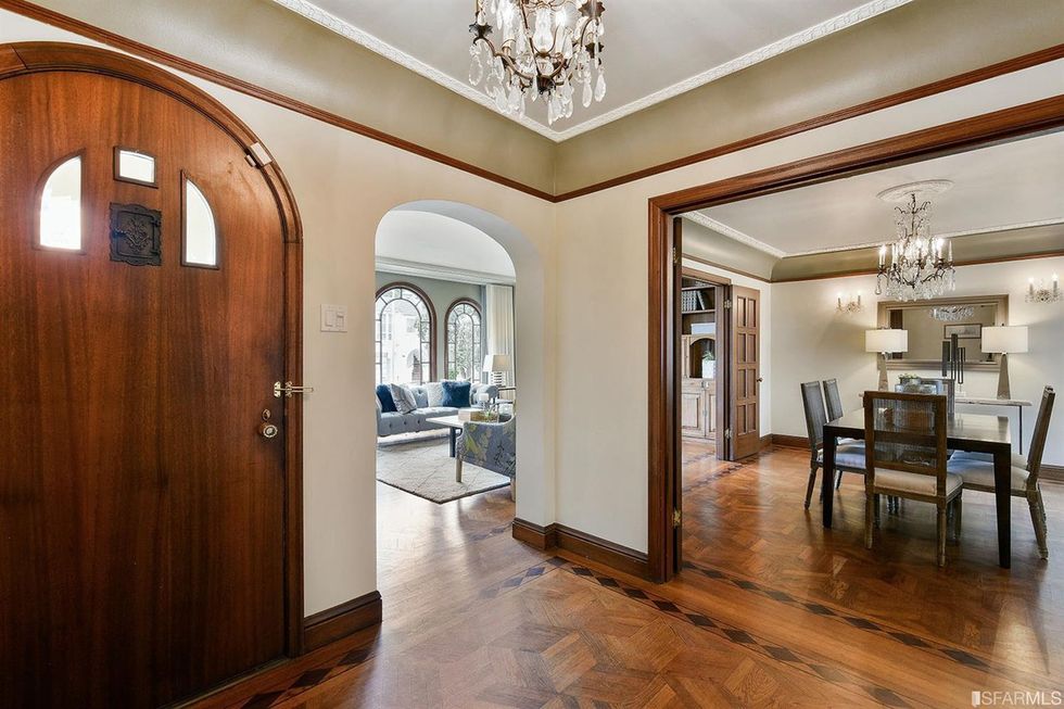 Dark wood trim and moldings, inlaid wood floors in the foyer, pretty arched windows, and an embellished fireplace give this 2,200-square-foot house a real sense of elegance. The three bedrooms are petite but functional, and there's plenty of extra space in the form of an office and a den that opens to a patio. There's even an ample backyard, a one-car garage, and a utility room—a combination of luxuries rarely found together in an SF home in this price range. Then again, it is perched out in the fog so you may never see the facade again. But at least you have a cozy hearth to keep you warm.