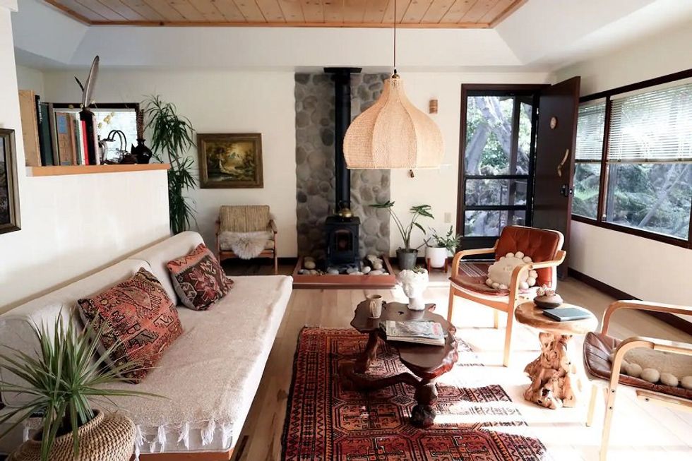 This beautiful, Conde Nast–approved historic cabin is the perfect place to lay your head after a day at Sequoia and Kings Canyon National Parks. Located just 15 minutes from the park’s entrance, this enchanting cabin is exactly the kind of escape where you can restore, reset, and recharge. One of three cabins on a forested six-acre property teeming with deer and turkeys, the well-designed studio has a king-size bed, soaking tub, full kitchen, and vintage-inspired stove. Beyond the homestead’s private yard and meditation areas is a stream, pond, and horses.