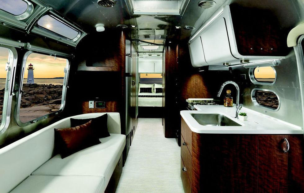 Maintaining the signature "silver bullet" aluminum body we've come to know and love, the interior is more akin to a boutique hotel than a house on wheels, with touch that the brand is calling "European." But it'll suit us Northern Californians just fine.