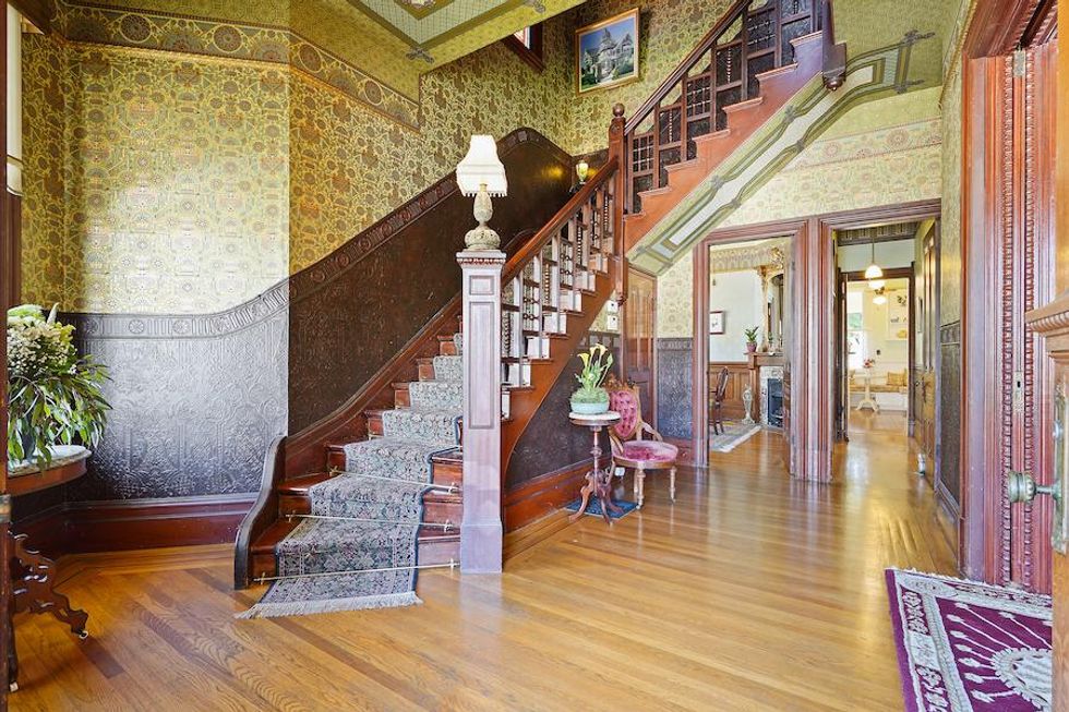 Built in 1893 as the home of David S. Brehaut, this eight-room mansion by architect Charles S. Shaner comes complete with a classic Victorian fainting room, a full attic, and a finished basement that once served the home's 1920's owner, wine merchant Sophus Federspiel, as a speakeasy. There's even a secret room to hide the booze. The home changed hands a couple of times in the '30s, then was owned by the Brown family and their descendants for the following seven decades until Villareal and White purchased it in 2004.