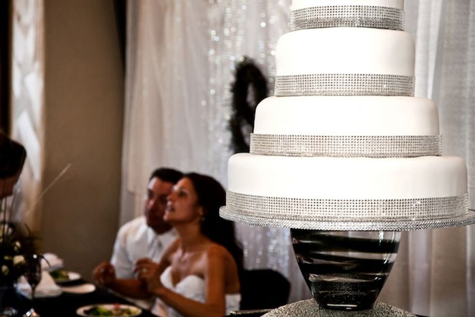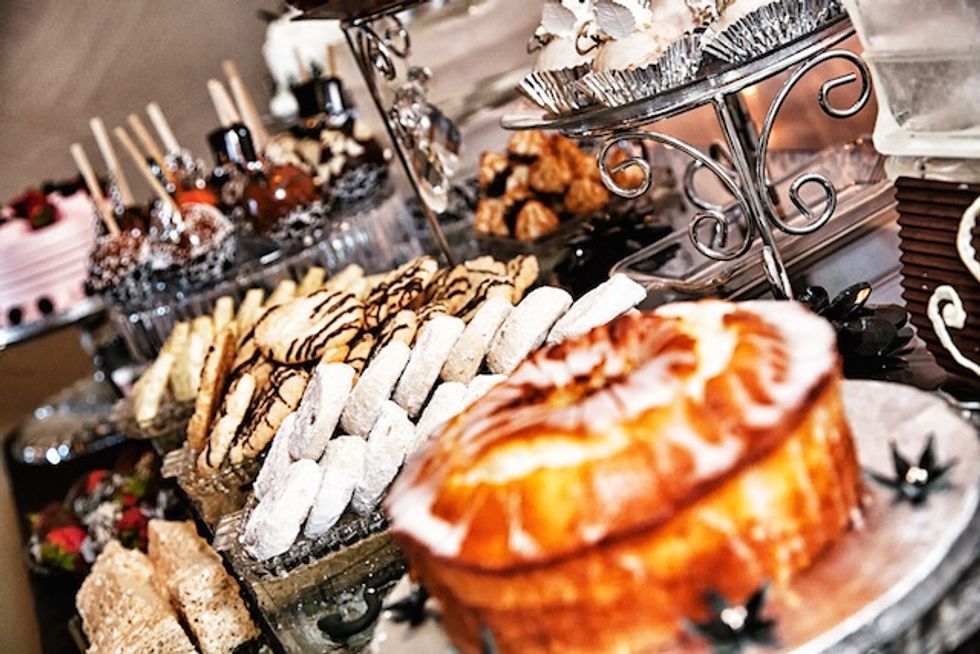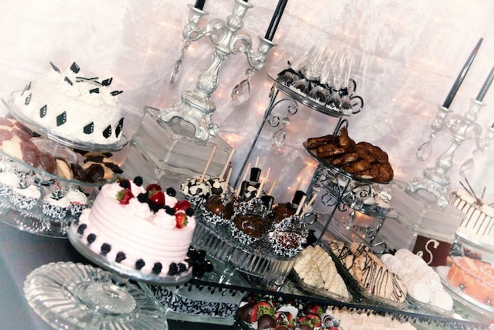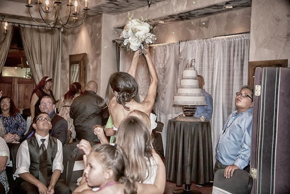 This DIY project started in Santa Cruz at the Davenport Landing Beach. The following day was the reception at the bride's employment; Verona's Italian Restaurant in Modesto. All the desserts (and there were many) were donated by family members, even the tiered cakes that were the centerpieces were made by friends. All the flowers, decorations, place settings and chair covers were all donated by family.