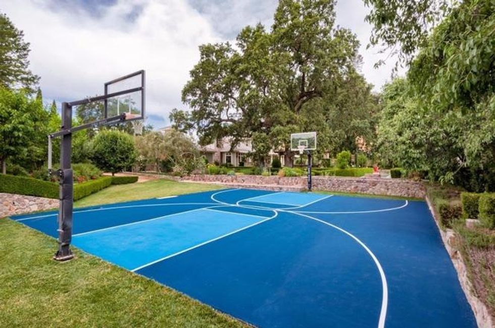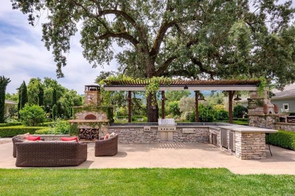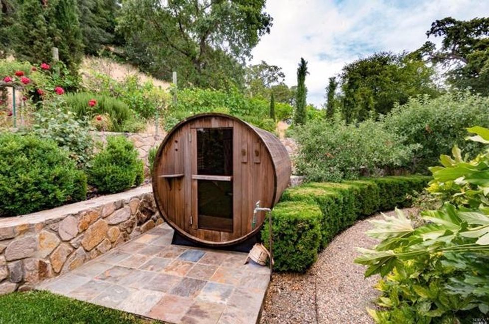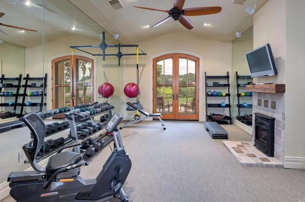 Upstairs you can get in a workout inside the home gym with vineyard views, or head outside for a game of horse on the basketball court. Prefer some R&R? Take a dip in the pool and enjoy the spa, then cook dinner al fresco in the outdoor kitchen among meandering gardens. Afterwards, kick back by the fire pit to stargaze with a glass of vino.