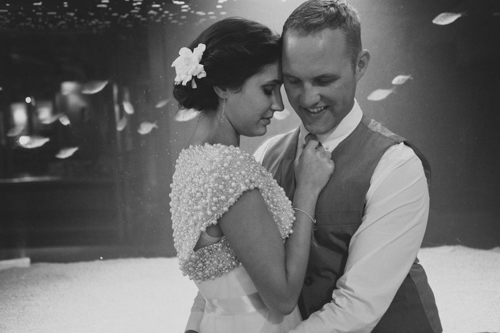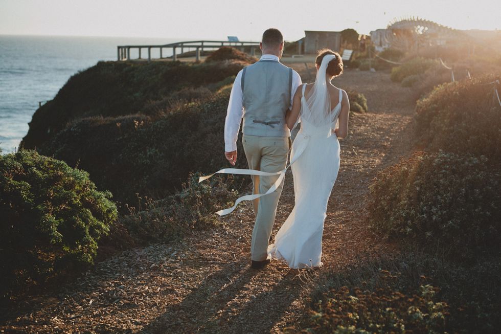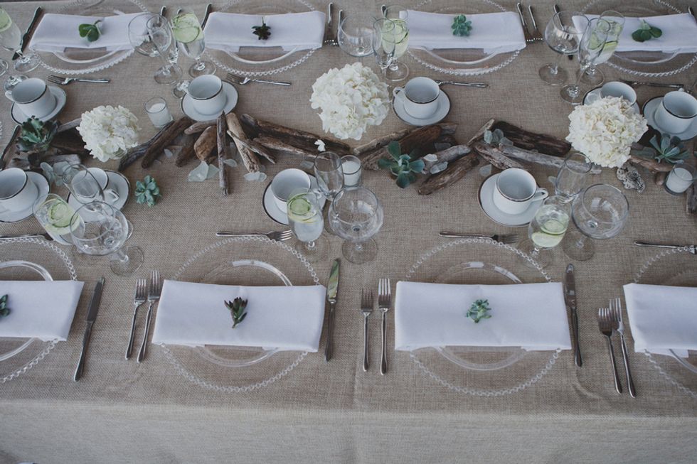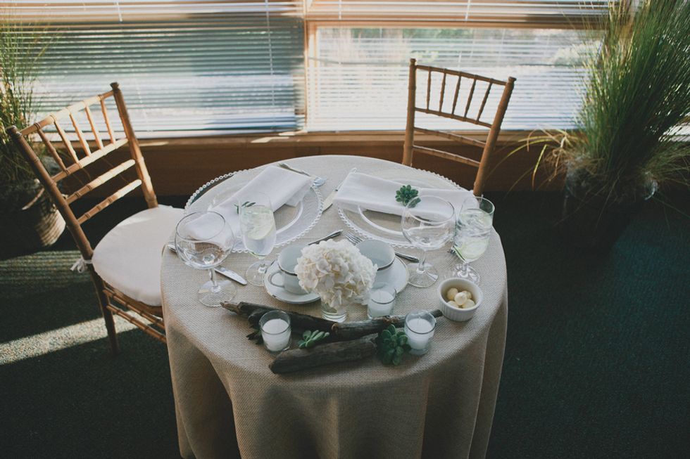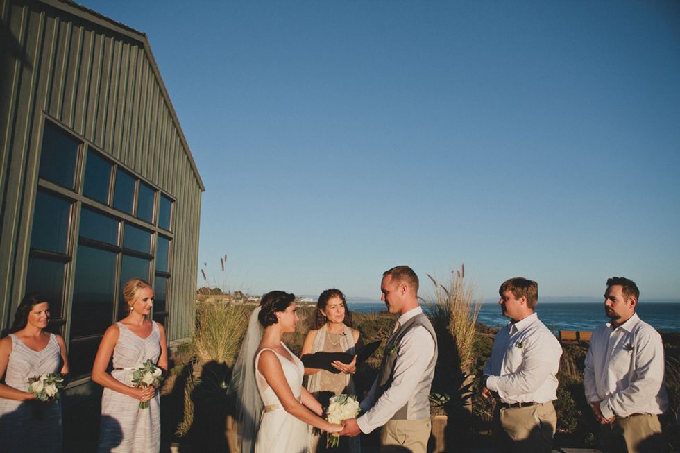 Alexandra and Tyler, a laid back and beach-loving couple, were married on the cliffs of Santa Cruz with a reception to follow at the Seymour Discovery Center. They made this a fun and fresh wedding by using succulents, burlap, driftwood, and sea glass to create a natural and neutral palette. On top of the sunshine, the sunset colored sky made it a beautiful, scenic wedding.