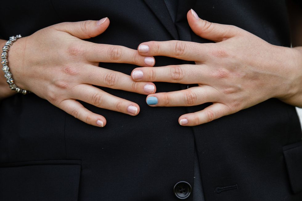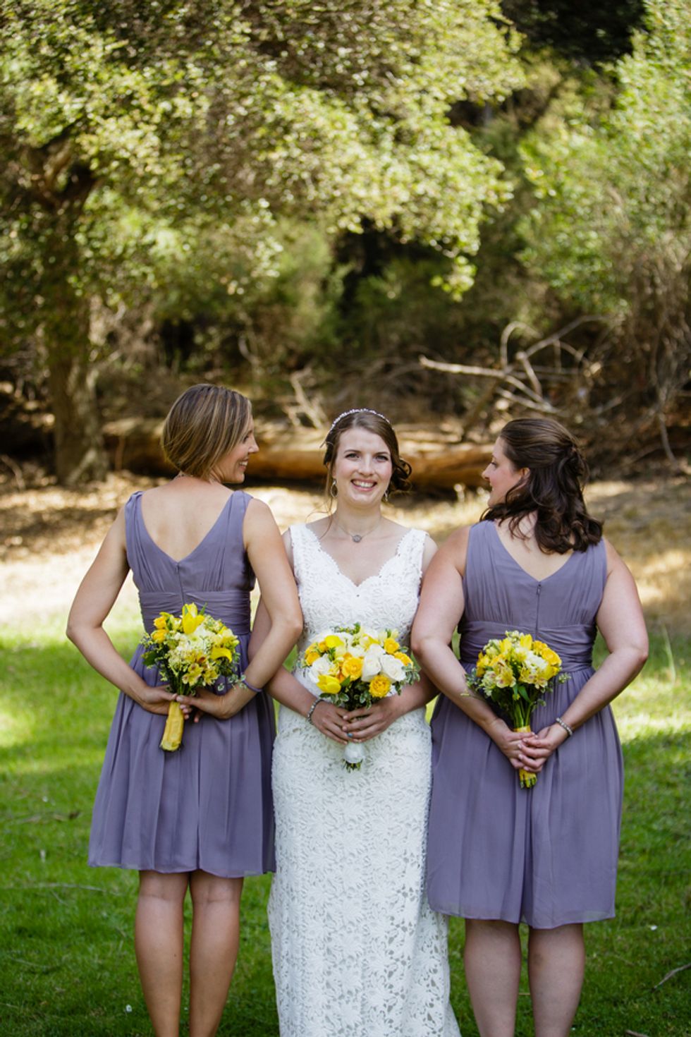 There something new (a lace Ann Taylor dress), something blue (her toes and ring fingernail), something borrowed (her bracelet), and something old (a necklace that her father gave her mother when they were dating). Her bright yellow shoes added a nice accent, and the groom's hat added a wonderful vintage detail to the wedding.