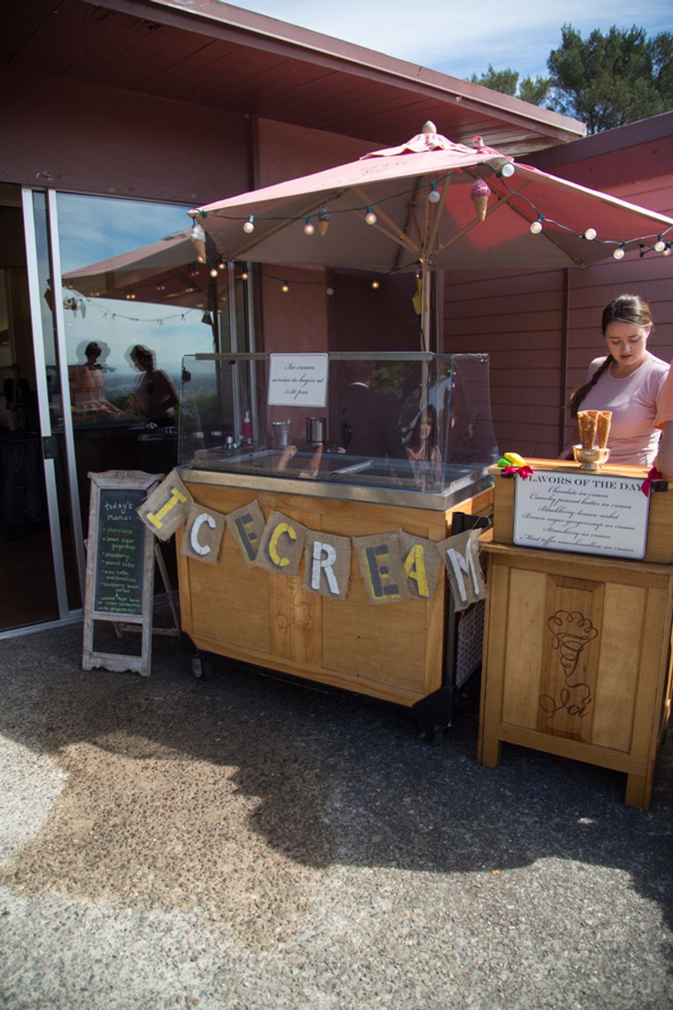 The two, who do not particularly like cake, decided to serve gourmet ice cream instead. Unique flavors and handmade cones had guests going back for more. At the end of the reception, hand stamped kitchen towels were handed out as favors.