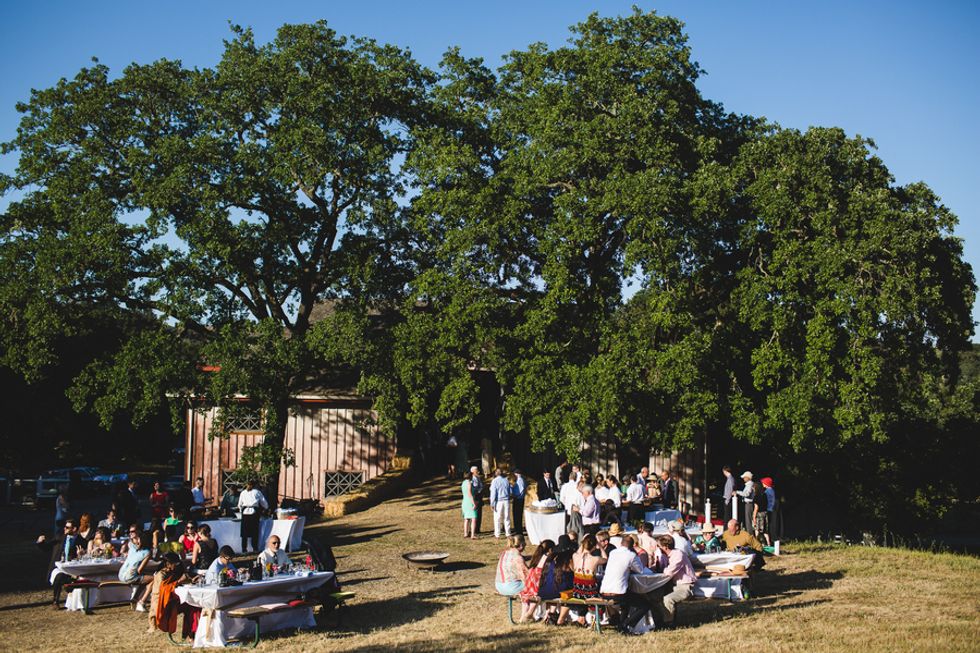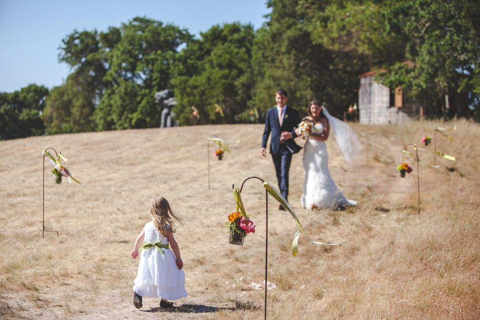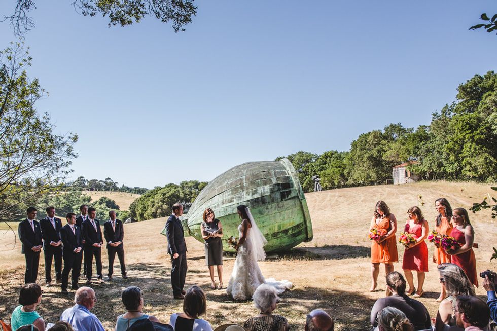 The bride spent her childhood running wild through these Woodside hills, climbing the giant sculptures, and dancing late into the night in the old barn. As luck would have it, one of the groom's aunts also happened to live only a few miles away, making the area feel connected to both of them.