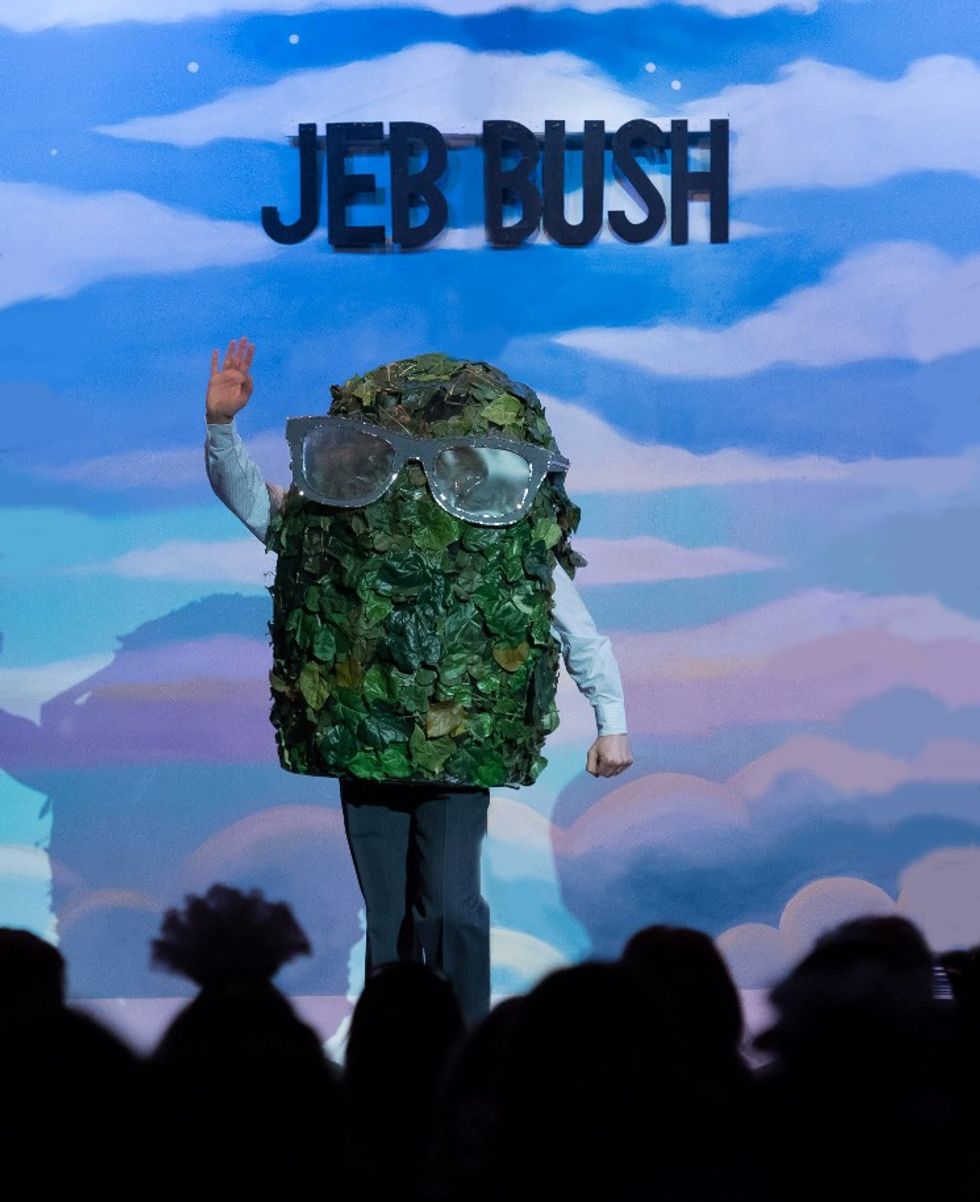 As we're sure you already know, Beach Blanket Babylon follows the story of Snow White as she takes a fast paced journey around the world in search of her “Prince Charming.” This year, new characters include presidential candidates Donald Trump, Bernie Sanders, Jeb Bush (dressed as an actual bush) and Hillary and Bill Clinton as well as Adele, Bill Cosby, Kim Kardashian, Lady Gaga, and Taylor Swift. With special appearances by characters from Orange Is the New Black and Star Wars. And don't forget the Golden State Warriors!