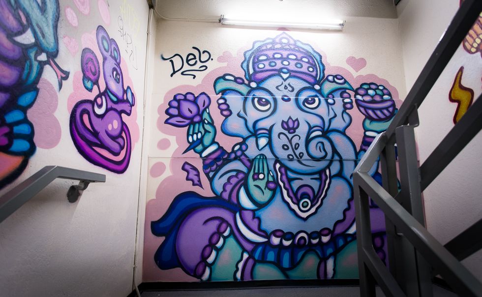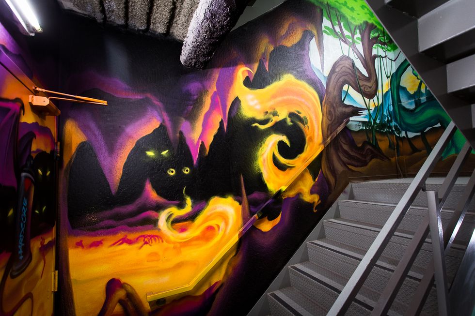 The 7 Story Canvas exhibit brings street art indoors, with seven floors of the hotel now properly tagged by international mural artists, each hand-selected by renowned artists Buff Monster and Apexer.