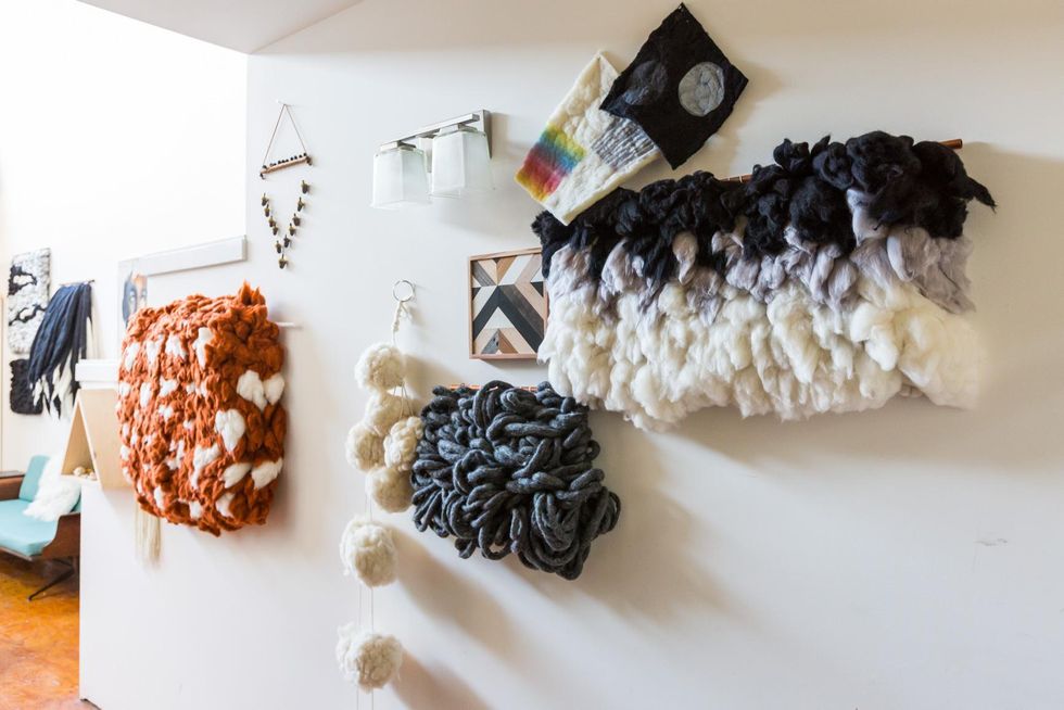 Oakland-based textile artist Meghan Shimek creates whimsical, cloudlike wall hangings reminiscent of fuzzy Dr. Seuss characters or bubbly Yoshi's Story landscapes.