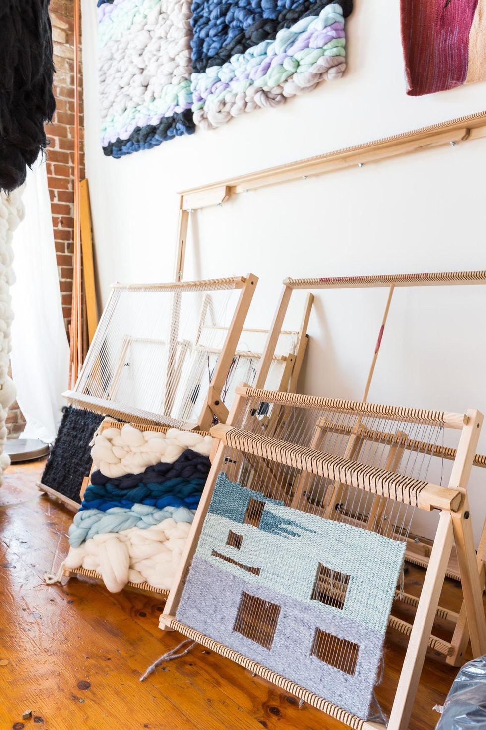 "Although it is usually a mess, it feels cozy and warm. I don't get stressed seeing unfinished work first thing when I wake up, it just feels like an invitation to get out of bed and make something. I also find that living with my work allows me to feel it as more of a living thing...sometimes it needs rest, sometimes it needs immediate attention."