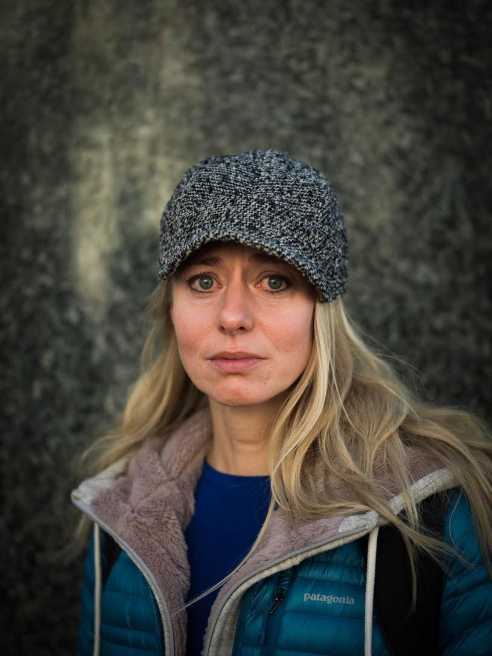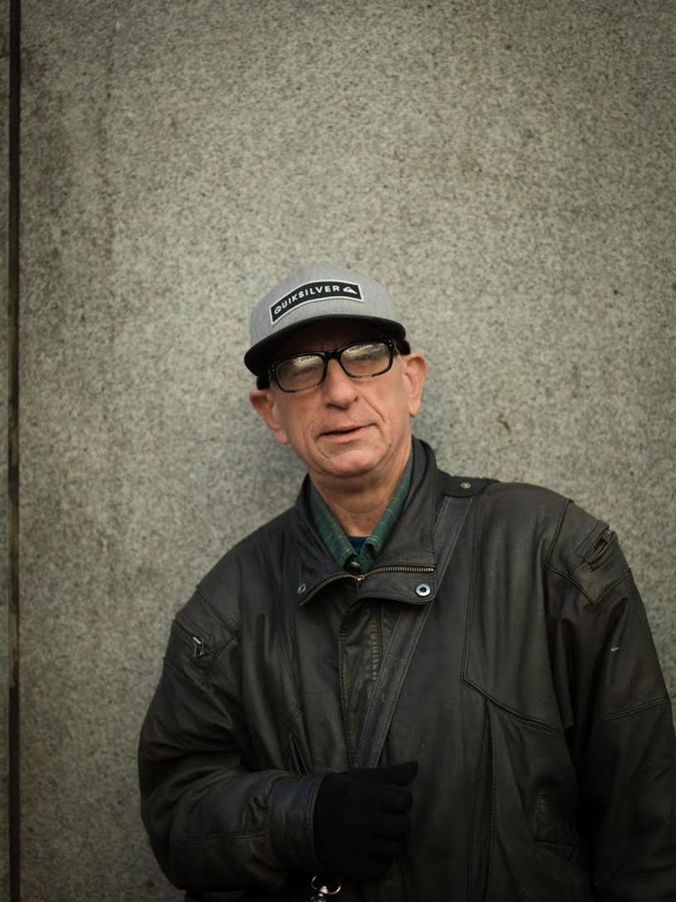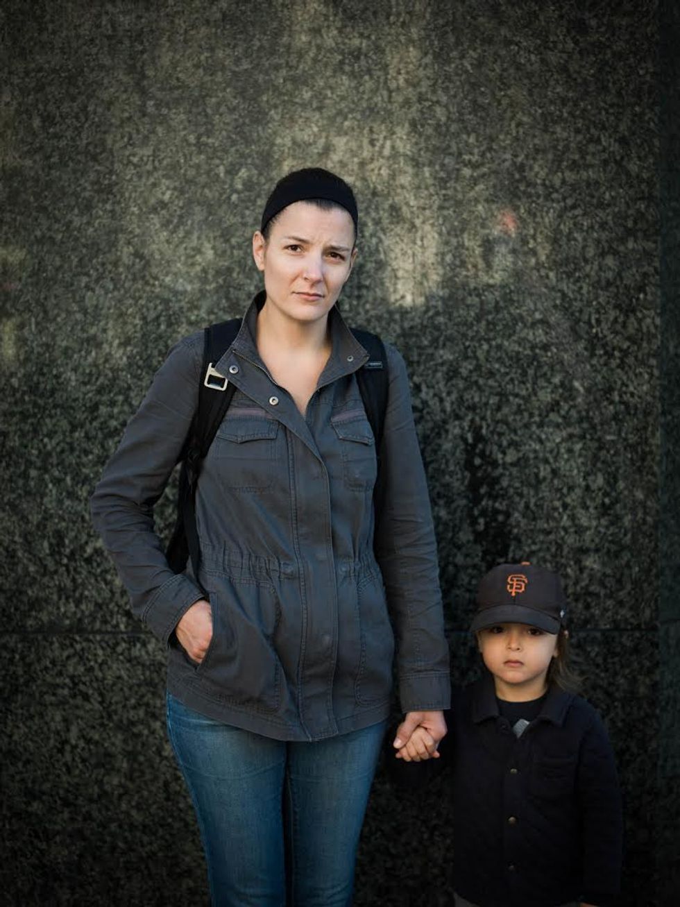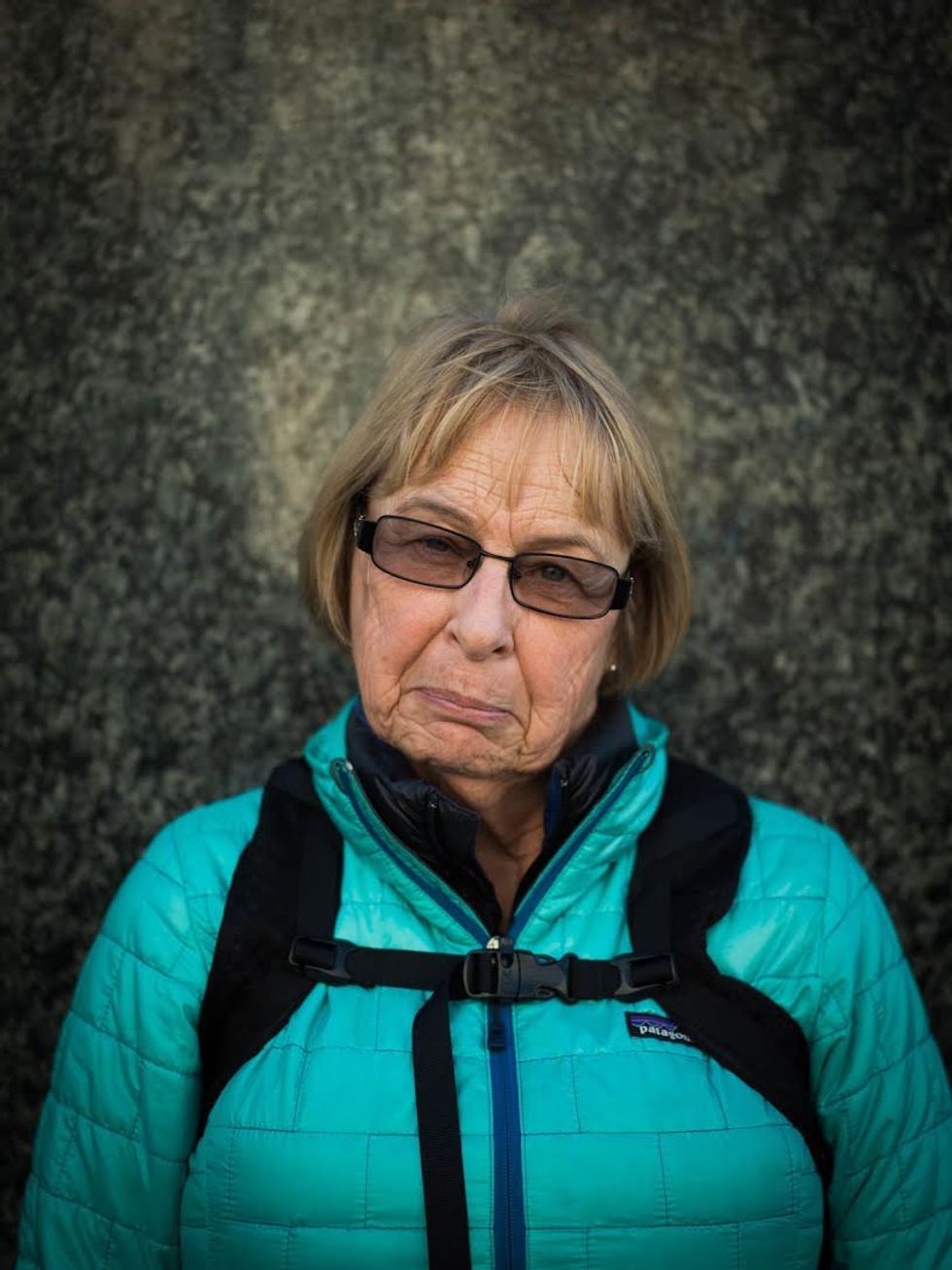 There is so much sorrow in this post-election air that I want to catch it, freeze it this time, and share it with others. Now, once a week, I take my camera to Powell Street and I stop people at random. I want to know how they're feeling, in just one word, as I try to capture it on film. As I wait between shots, often they exhale deeply and then give a look that makes the hair on the back of my neck stand up. Click.