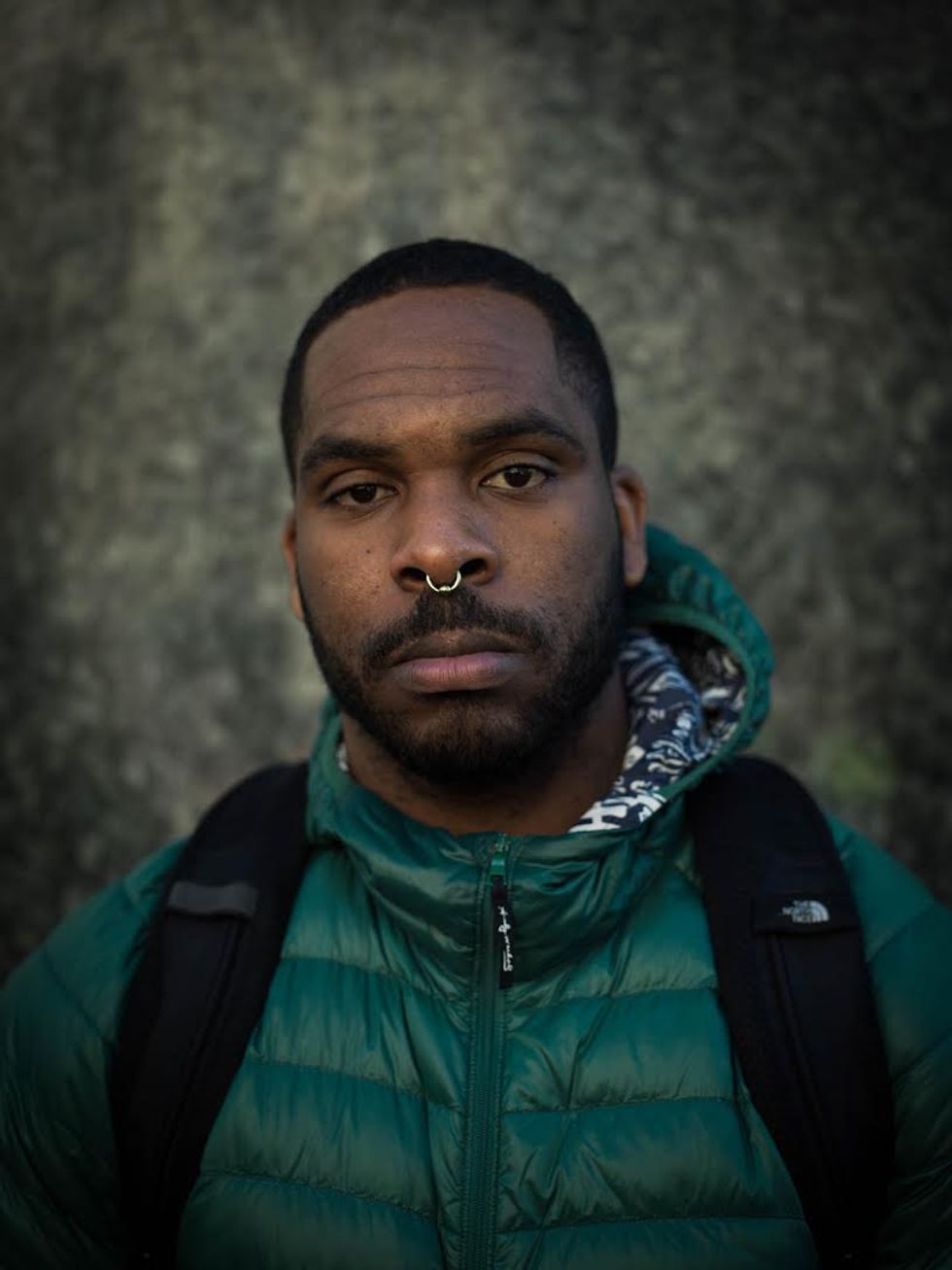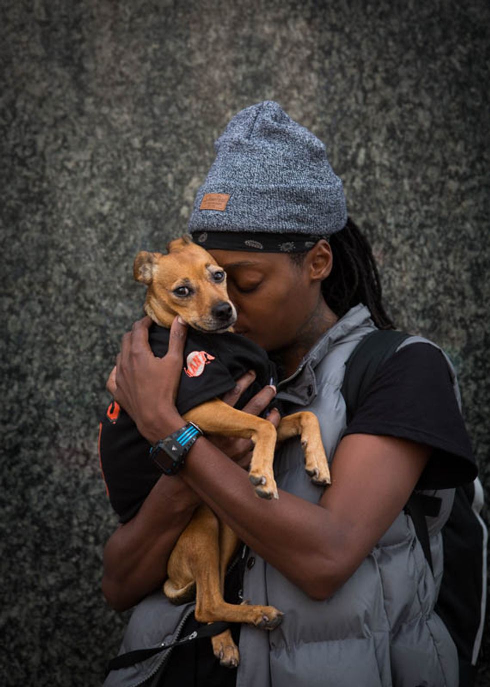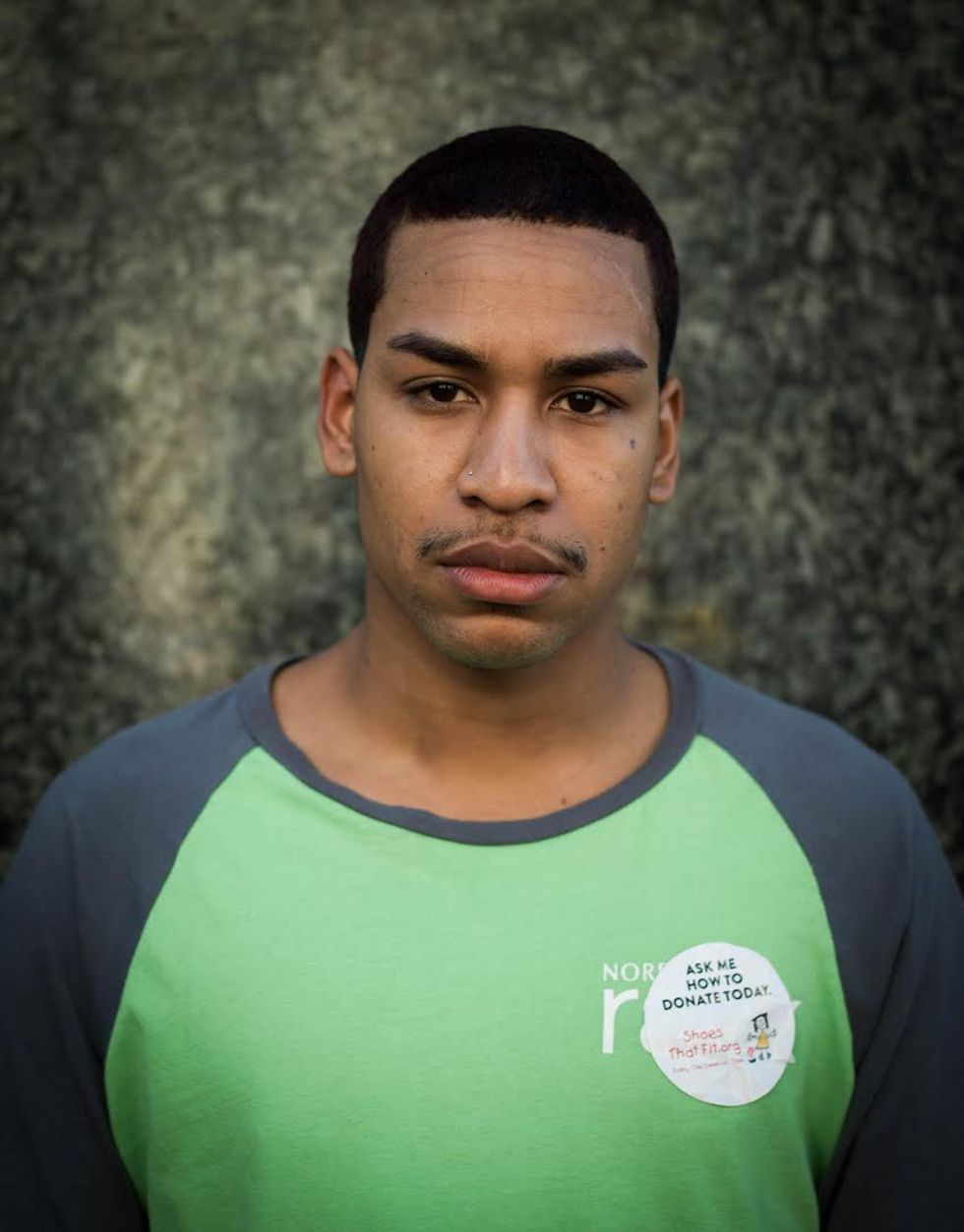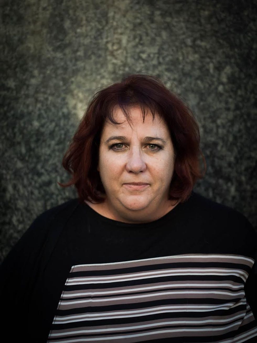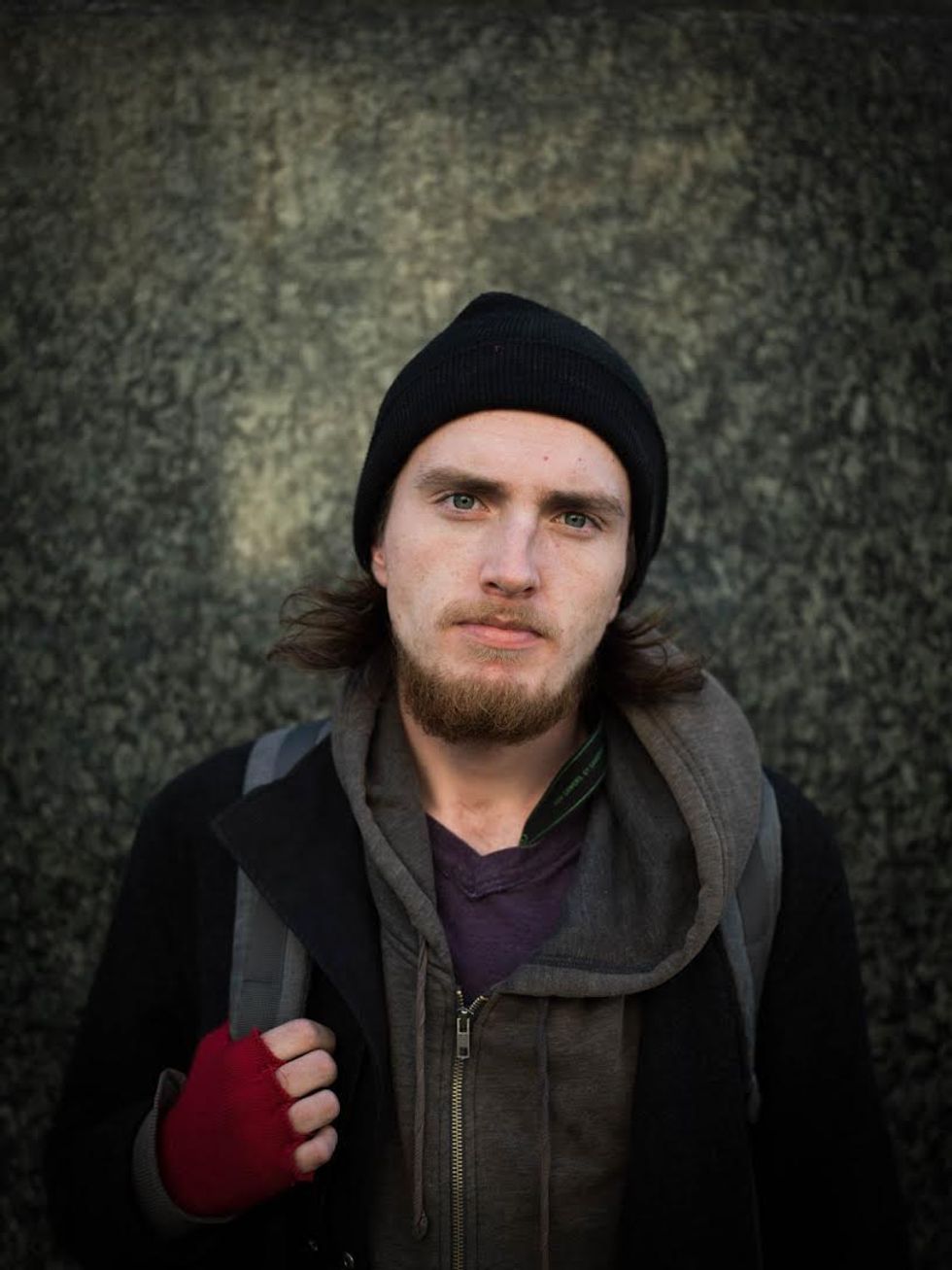 There is so much sorrow in this post-election air that I want to catch it, freeze it this time, and share it with others. Now, once a week, I take my camera to Powell Street and I stop people at random. I want to know how they're feeling, in just one word, as I try to capture it on film. As I wait between shots, often they exhale deeply and then give a look that makes the hair on the back of my neck stand up. Click.