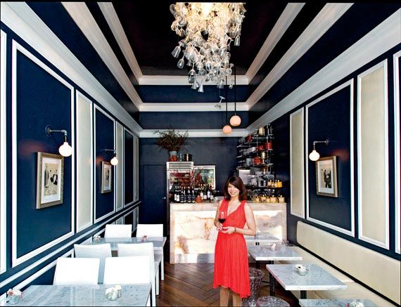 An apostrophe-sized space on Polk Street, the wine salon Et Al.’s name roughly translates to “and others”—a reference to its liquid offerings as compared to the heavy Italian accent at Biondivino, owner Ceri Smith’s wine boutique around the corner. In fact, it is a Parisian inflection that strikes you at Et Al., where leather paneling and white trim flank deep midnight walls; a backlit onyx bar casts a glow on Carrara marble tabletops and Kartell’s clear polycarbonate stools; and the chandelier, fashioned from old wine glasses, is punctuated at its cascading tip by a glass that belonged to Smith’s great-grandmother.
