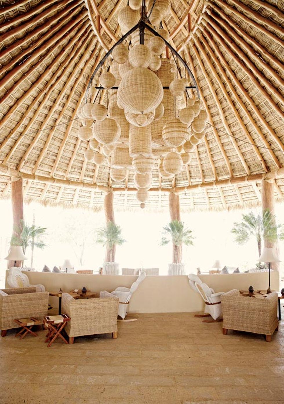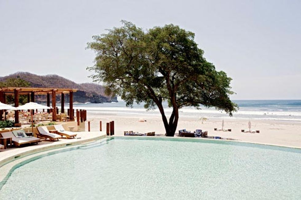We descend into the Pellas kingdom, cradled by cliffs on either side of wide-open beach, the light matching our course and giving way to an electric smear of sunset. Our caravan arrives to the welcoming faces of beautiful locals, who speak delicately accented English, whisk our bags away, and guide us into a massive palapa—a thatched roof hut on the scale of what I imagine is like Dubai. In this plein-air lounge looking out upon the pool and beach beyond, an installation of lanterns—big, small, round, cylindrical—sway overhead in the breeze. They give a warm glow through their woven shells above a half-moon couch backed by gingham pillows made for giants. A cool, citrus-scented towel brings relief, though less so than the refreshing macuá—the national cocktail of Nica made from fresh orange, lemon, and guava juices, plus Flor de Caña rum (the Pellas family’s other business)—that’s delivered to our eager hands in a hand-carved jicaro cup.