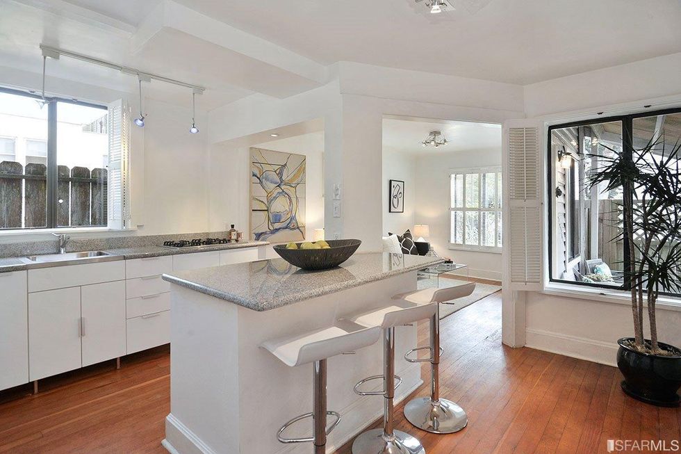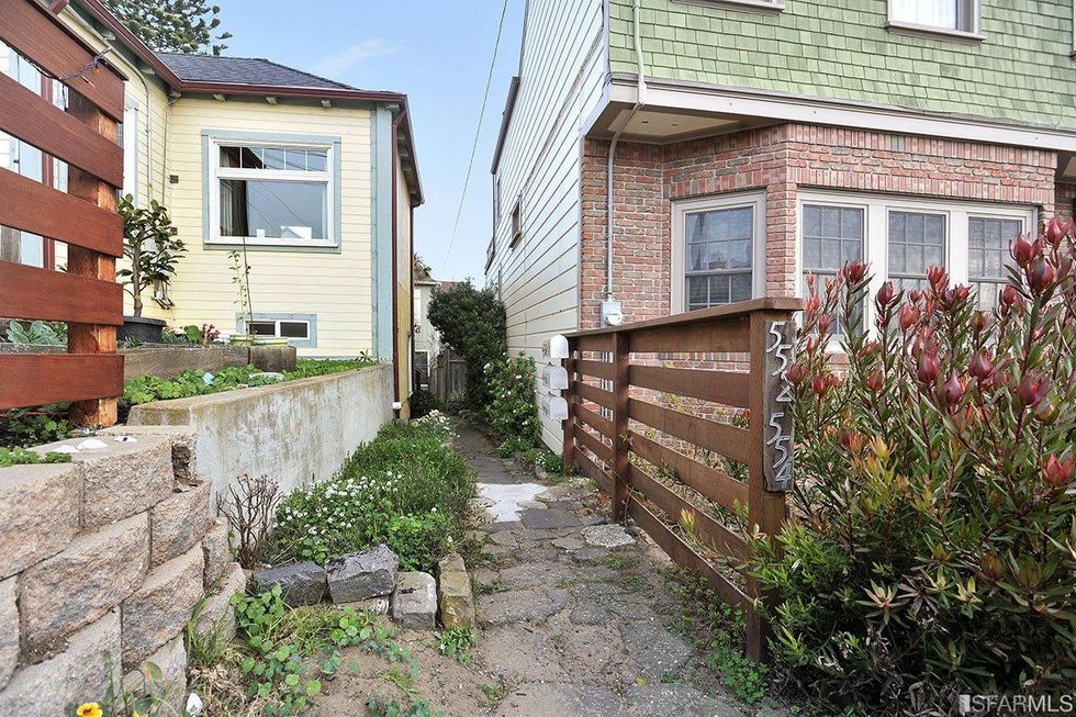 San Francisco ex-mayor Adolph Sutro used his mining fortune to build this special abode. A cobblestone path leads guests past the covered front porch and into the intimate quarters of this two-story cottage. The first floor boasts an open-floor plan with the home's original hardwood floors and period details. Chic and modern decor fill the space. A laundry room and updated kitchen round out the bottom level, while two bedrooms, a family room, and bathroom can be found upstairs.