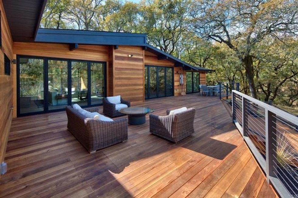 Inspired by Frank Lloyd Wright, this sprawling 1959 home in Sonoma has all the makings of a modern retreat for midcentury design lovers—think open floor plan, oodles of redwood decking, and wooded views through picture windows throughout.