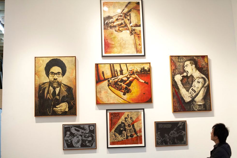 Trail blazers and rule breakers from a bygone era sprinkle the soaring white walls of 941 Geary, all captured by legendary fringe culture photographer Glen E. Friedman. This man was one of the first to spray mainstream eyes with images of the gang of Z-Boys from Dogtown (like the middle finger-flipping Tony Alva and Jay Adams), volatile punk acts (like the devil-locked Glenn Danzig in full Misfits regalia, Bad Brains, and Fugazi), and hip hop pioneers like Run D.M.C. and Ice-T.