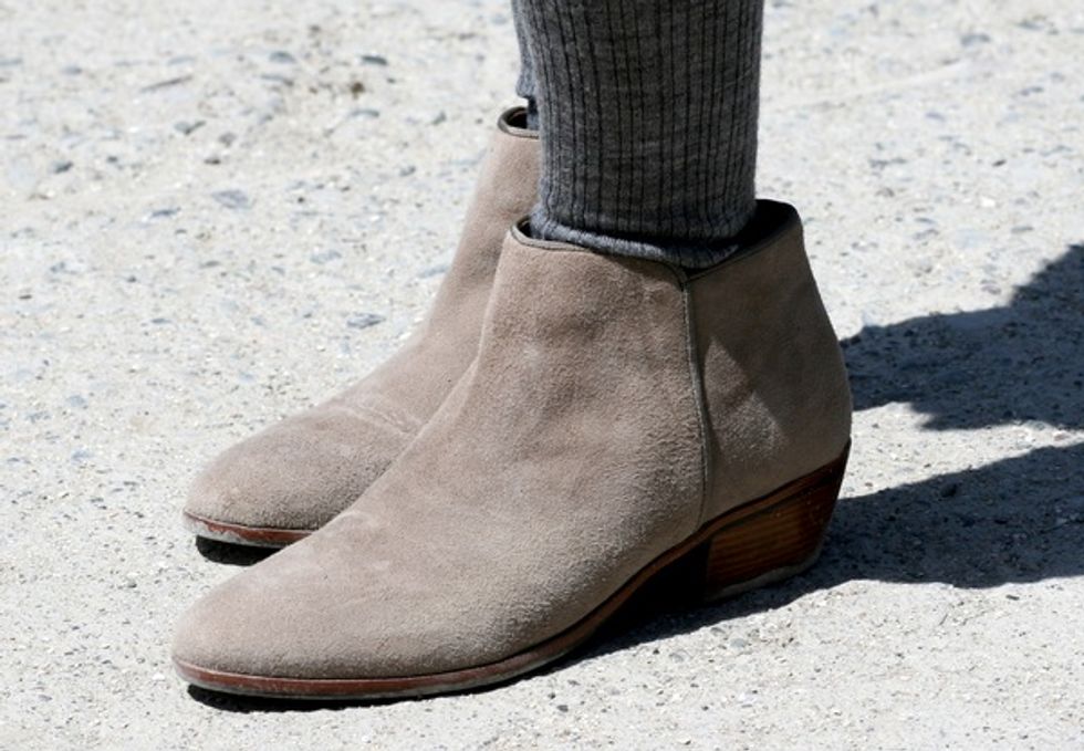 What she wore: Ray-Ban wayfarer sunglasses; Earrings by Chavel, purchased from Native American Vendors Market in Santa Fe, NM; Top from H&M; Uniqlo shorts; J. Crew knit knee-high stockings; Canon S100 camera and Yodobashi leather camera case, purchased in Japan; Ring by Delezhen, purchased on Etsy; Sam Edelman suede booties, purchased from Nordstrom.