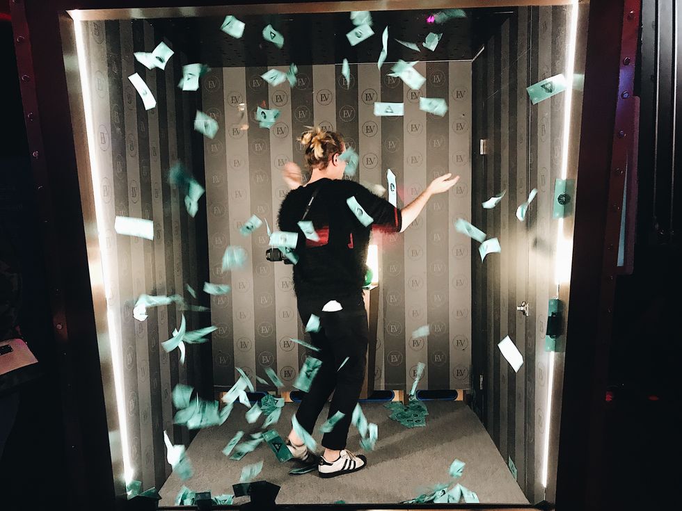 You can test your stamina on the pink Corporate Climb rock wall; try your best to grab hold the fake bills flying around the Money Maker box; and take a plunge in the Sea of Objectification—yes, that's the aforementioned aqua-tiled titty pool with soft foam boobies floating about. The message: Ladies are not playthings.
