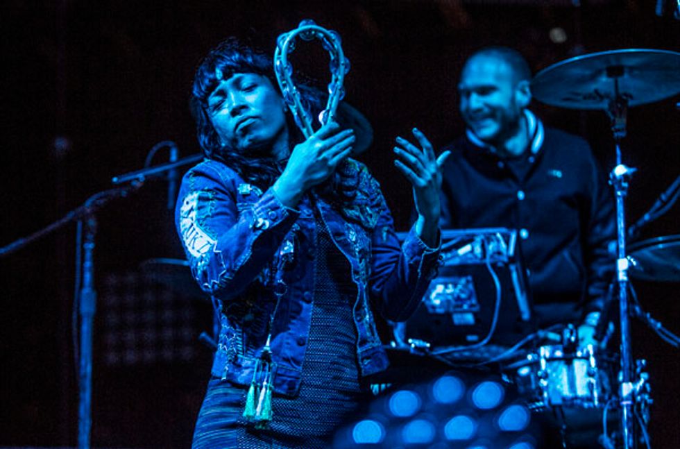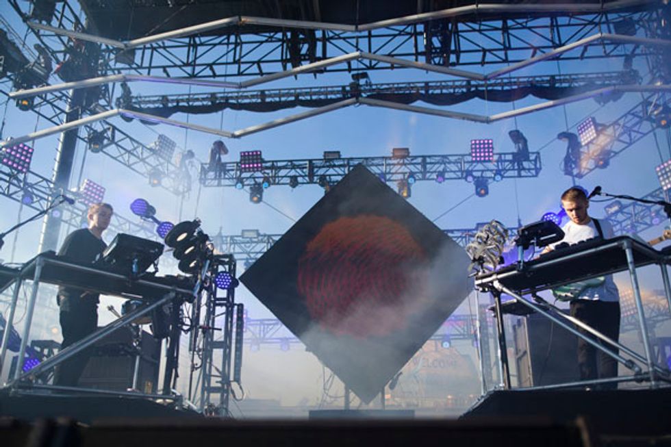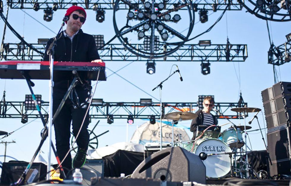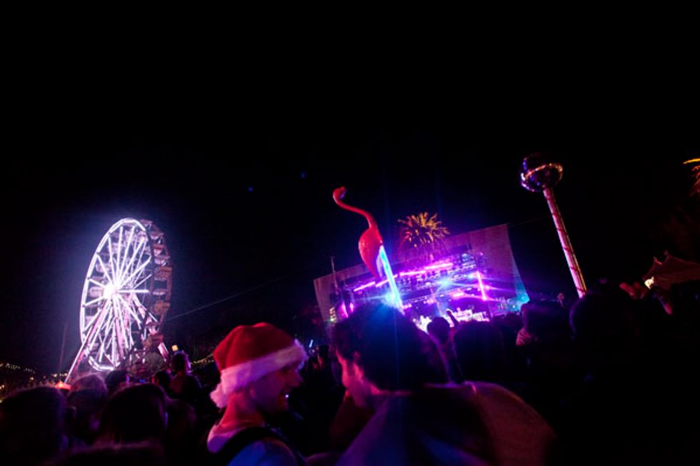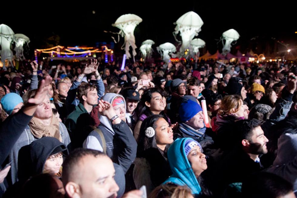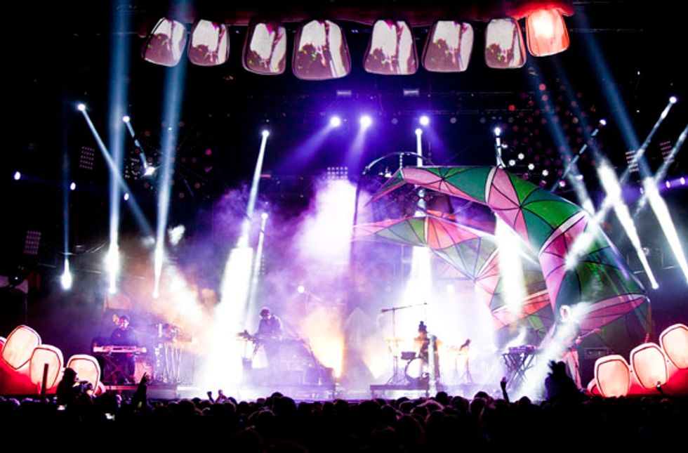 Per usual, Saturday was heavy on the electronic sets. Poolside hit the nail on the head with their namesake and should have had piña coladas passed around as they mesmerized the crowd with their groovy, ambient tunes. Phantogram was a huge hit and the bouncing, bright jellyfish added to the atmosphere. By the time Atoms for Peace played, much of the crowd had retreated from the cold (you could easily stand as far forward as the sound tent) but Flea's signature bass lines and Thom Yorke's evocative moaning pleased.