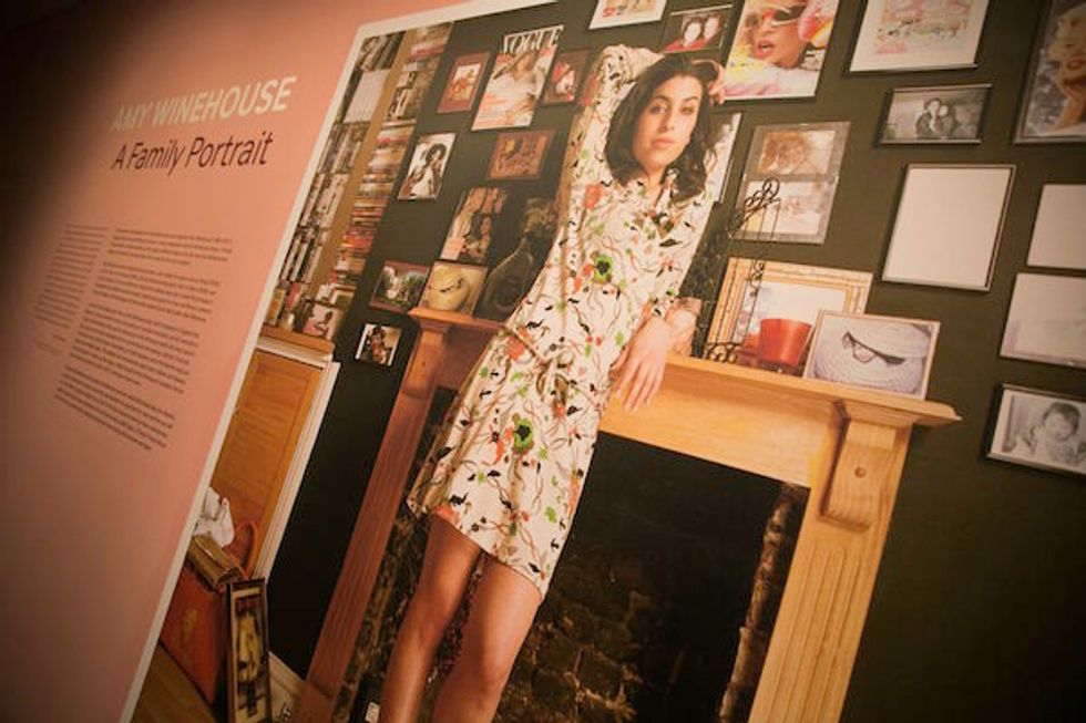 Previously unseen vintage photographs and family belongings on display in A Family Portrait give a glimpse of the Winehouse family history. The exhibition features many mementos from her successful career such as flyers, festival badges, concert photographs, magazine covers, and one of her Grammy Awards. Winehouse’s distinctive style, with her iconic beehive hairdo and tattoos (including one of her grandmother Cynthia), made her a favorite with press photographers. A selection of Winehouse’s clothing, both designer and high street, are on display.
