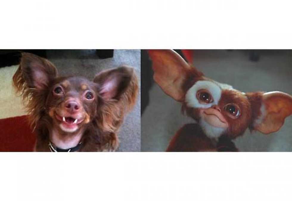 Coco and her doppleganger, Mogwai! From her big brown eyes to her ears and happy smile, she definitely resembles the baby Gremlin (a Mogwai), Gizmo. Congratulations to little Coco and her owner, Joe Castiglione. Here's what these two won:
